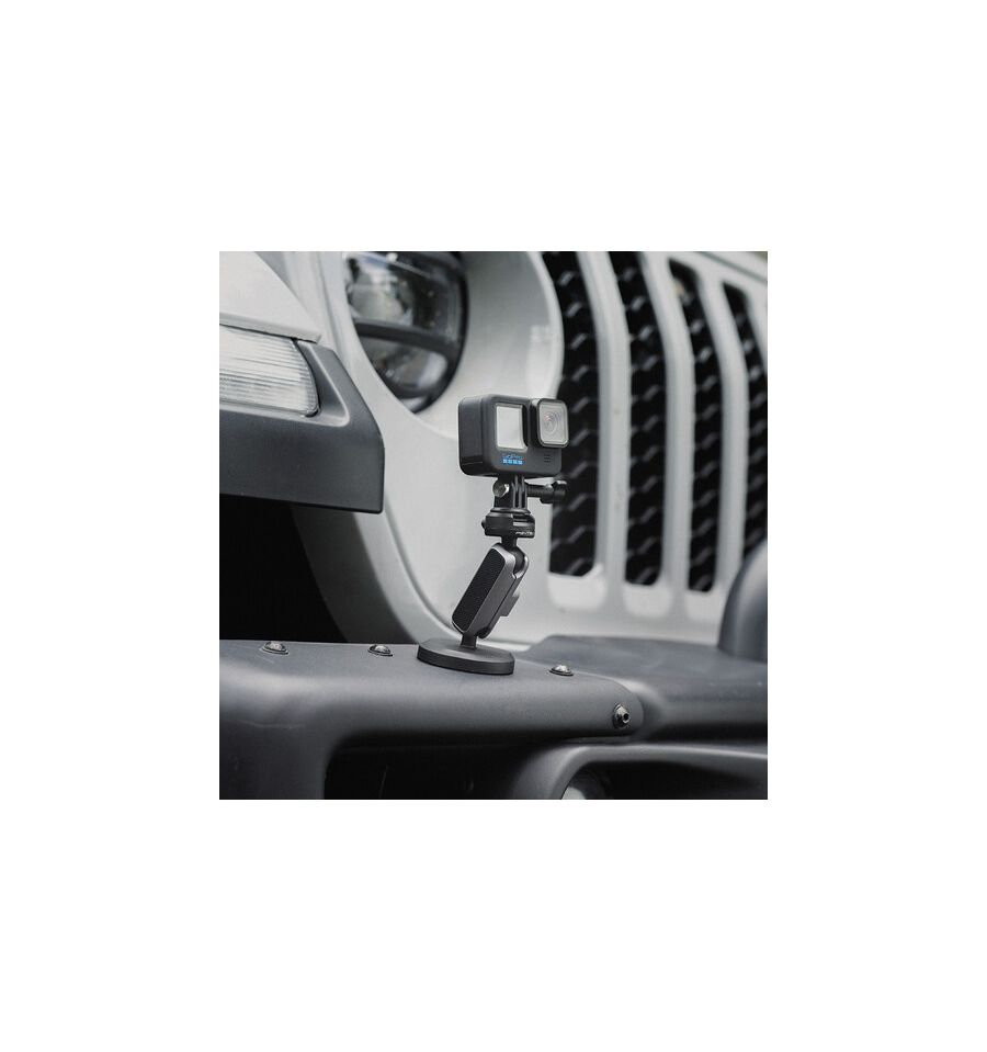 El soporte magnético tiene un fuerte sistema de sujeción, permitiendo montar la cámara en cualquier superficie metálica. Es ideal para grabar en entornos urbanos o durante actividades en las que se requiere un montaje rápido.