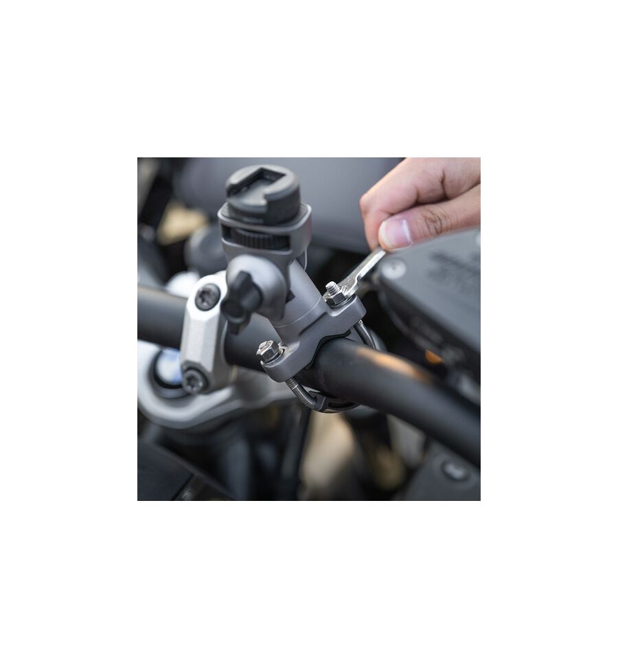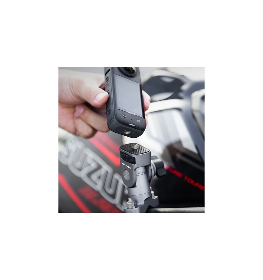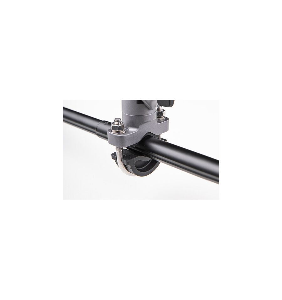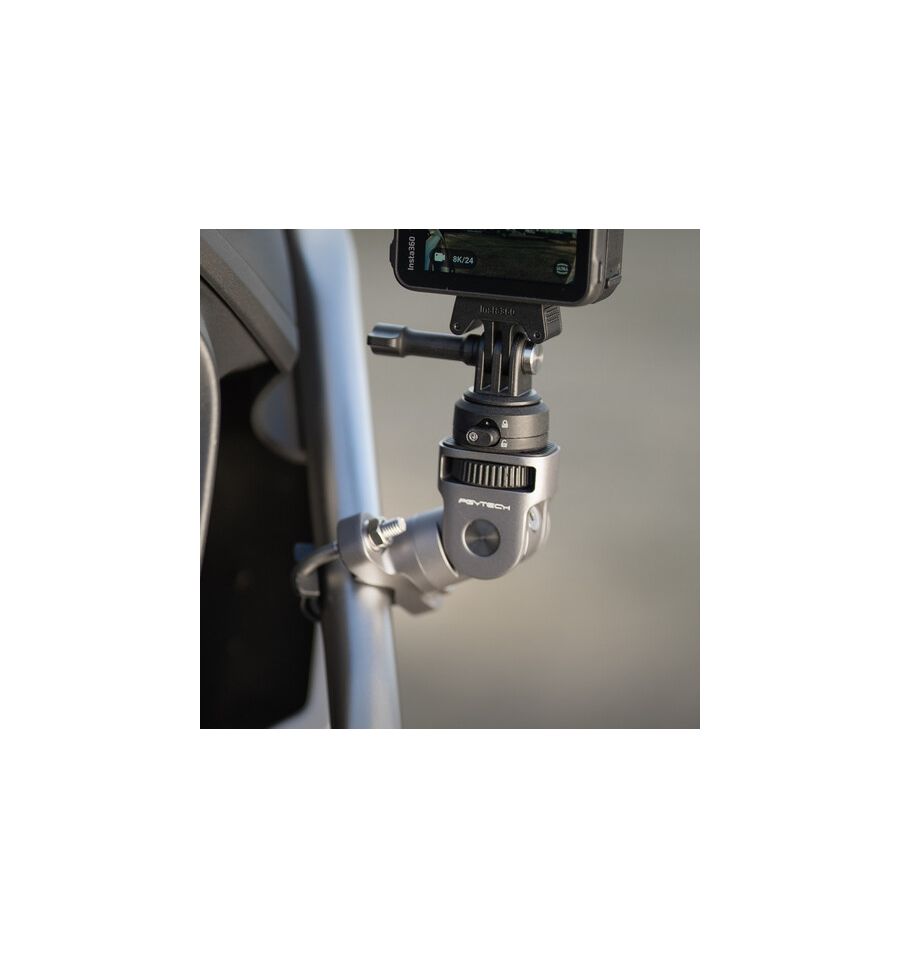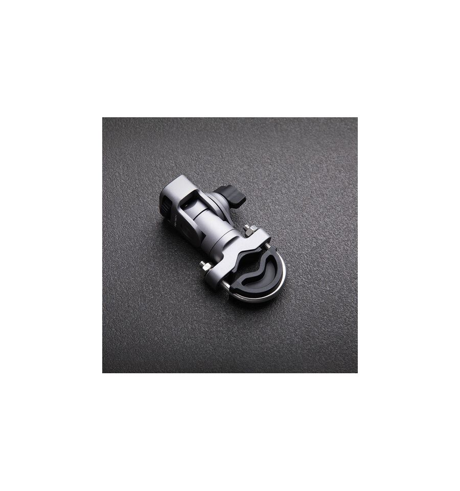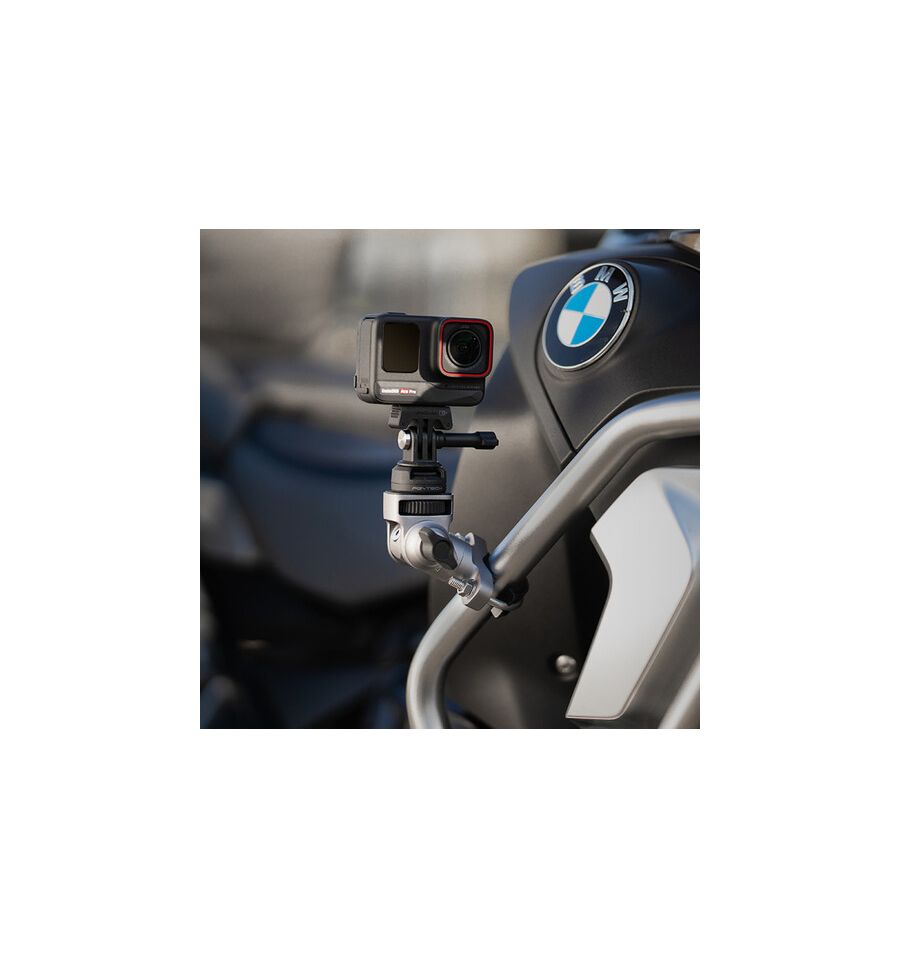 Este soporte se adapta a estructuras redondas como manillares, tubos o bastones, asegurando un montaje firme. Su diseño robusto lo hace ideal para grabaciones en movimiento o en condiciones extremas.