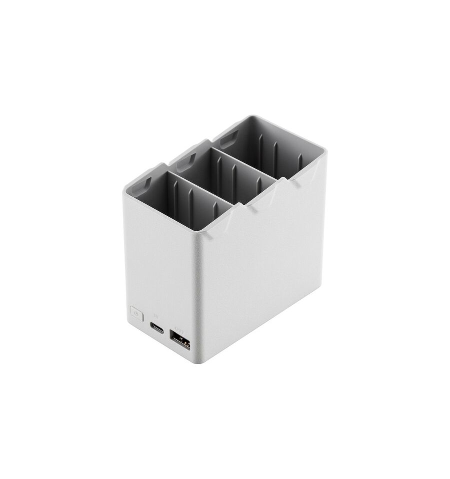 El centro de carga tiene ranuras para hasta tres baterías de vuelo y recargará primero de forma inteligente la batería que tenga más energía. De esa manera, puede tener una batería completa para su Mini 3 / Mini 4 Pro lista para funcionar lo antes posible.