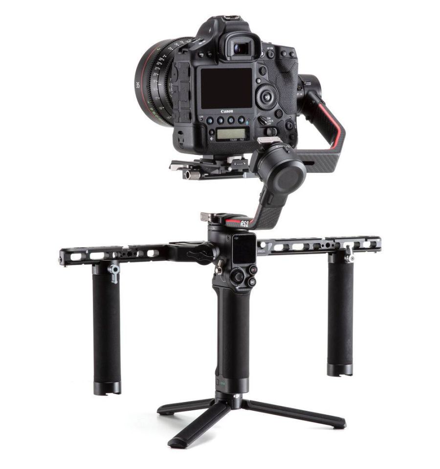 Cuenta con dos brazos de extensión y dos asas de agarre. Los brazos se fijan a los soportes NATO izquierdo y derecho en los gimbals RS 2 y RSC 2, y las manijas de agarre se aseguran a los brazos, también con soportes NATO.