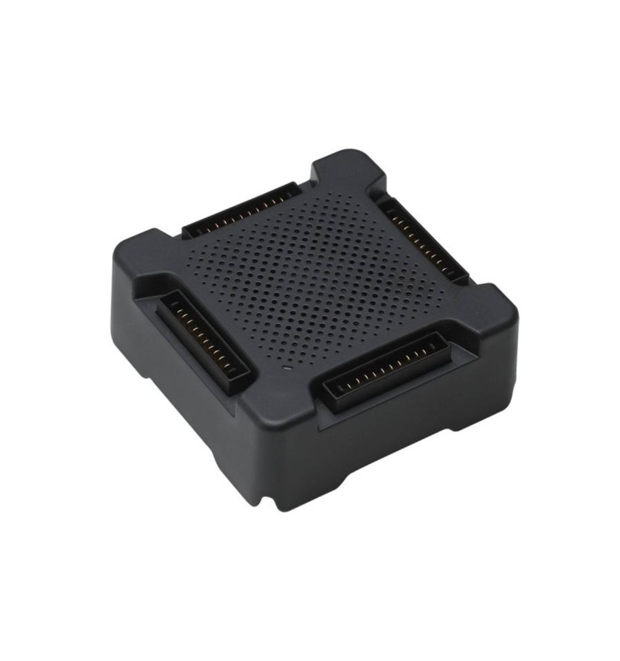 El Puerto de Carga de Baterías de Vuelo Inteligente Mavic está diseñado para ser utilizado con Baterías de Vuelo Inteligente. Cuando se usa en conjunto con el Cargador de Batería Mavic, puede cargar hasta cuatro Baterías de Vuelo Inteligente simultáneamente. Las Baterías de Vuelo Inteligente se cargarán en orden de acuerdo a sus niveles de batería, desde la más a la menos cargada. El Puerto de Carga avanzado optimiza la carga y mejora la eficiencia. La versión avanzada completa la carga en una hora menos que la versión estándar. Cuando se utiliza con el cargador del Phantom 4, el tiempo de carga se reduce a 2.5 horas.