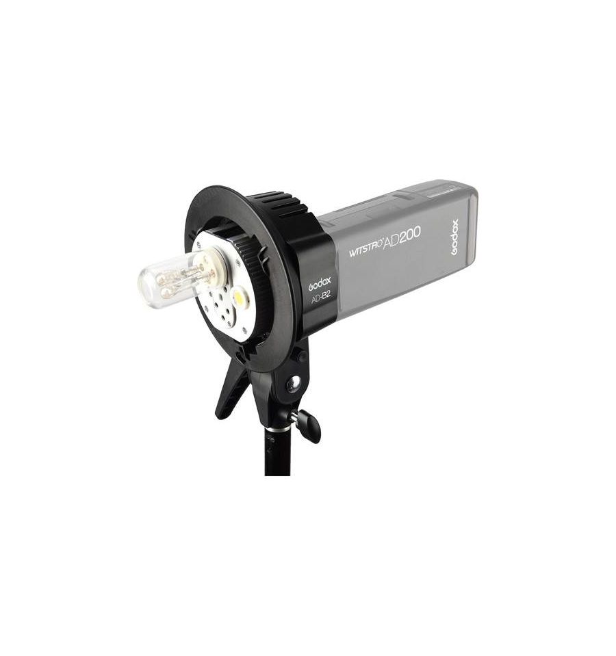 El soporte de flash de doble potencia para AD200 de Godox le permite montar dos flashes de bolsillo AD200 juntos para duplicar la potencia del flash. El soporte tiene un soporte frontal para accesorios tipo Bowens S y un receptor de 5/8" para soportes de iluminación.