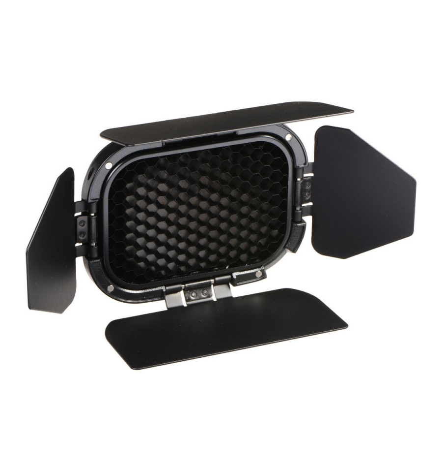 El kit Godox BD-07 para flashes Godox AD200 y AD200 Pro incluye una aletas con cuatro hojas, una rejilla de nido de abeja y filtros de color para cambiar el color de la luz. Las puertas le permiten dirigir la luz de la lámpara para iluminar las áreas deseadas del objeto y bloquear la luz de las áreas que no se van a iluminar. El nido de abeja te permite contraer el haz de luz en un círculo suave que es perfecto para aplicaciones como iluminar tu cabello. El conjunto incluye cuatro filtros de color que lo ayudarán a lograr efectos creativos.