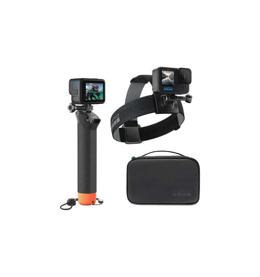 El GoPro Adventure Kit 3.0 le permite usar cualquier cámara de acción GoPro de mano, montada en la cabeza o montada en un clip en la mayoría de sus aventuras en tierra o bajo el agua. El kit incluye la empuñadura flotante The Handler, una correa para la cabeza, un clip y un estuche de transporte compacto y personalizable que se adapta a todos los accesorios, incluida la cámara.