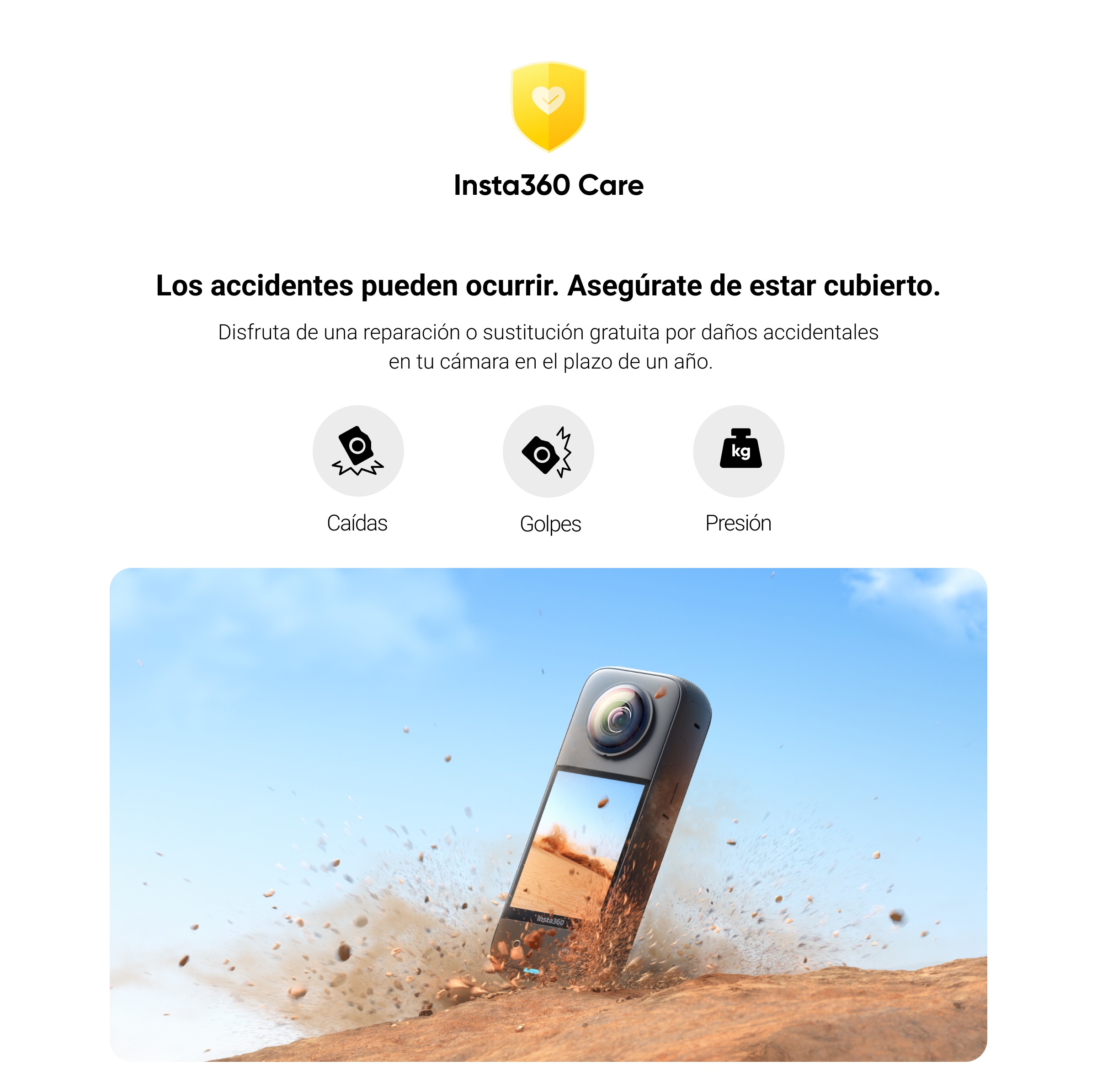 La cobertura es sólo para la cámara seleccionada. Los productos no lanzados oficialmente por Insta360 y las colaboraciones no están cubiertos.