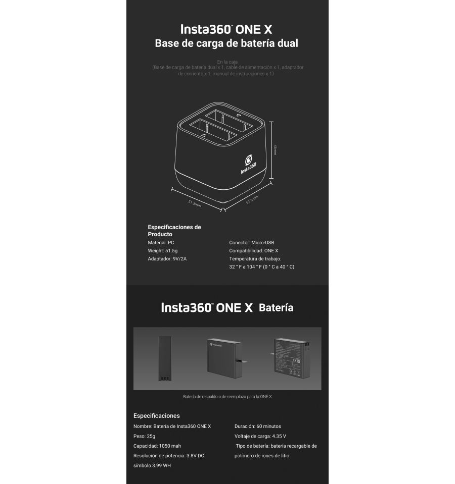 Cargador doble para baterías de Insta360 ONE X (No incluye baterías)