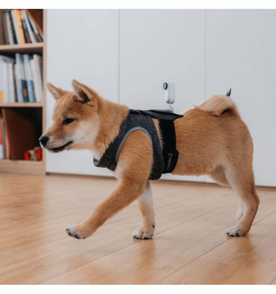 La correa para mascotas es ajustable entre 13.8 y 17.7 "para adaptarse a la mayoría de las mascotas y se asegura fácilmente en la parte superior con cierres de gancho y bucle. Insta360 recomienda ponérsela sobre el arnés o la ropa de su mascota para disparar con mayor estabilidad.