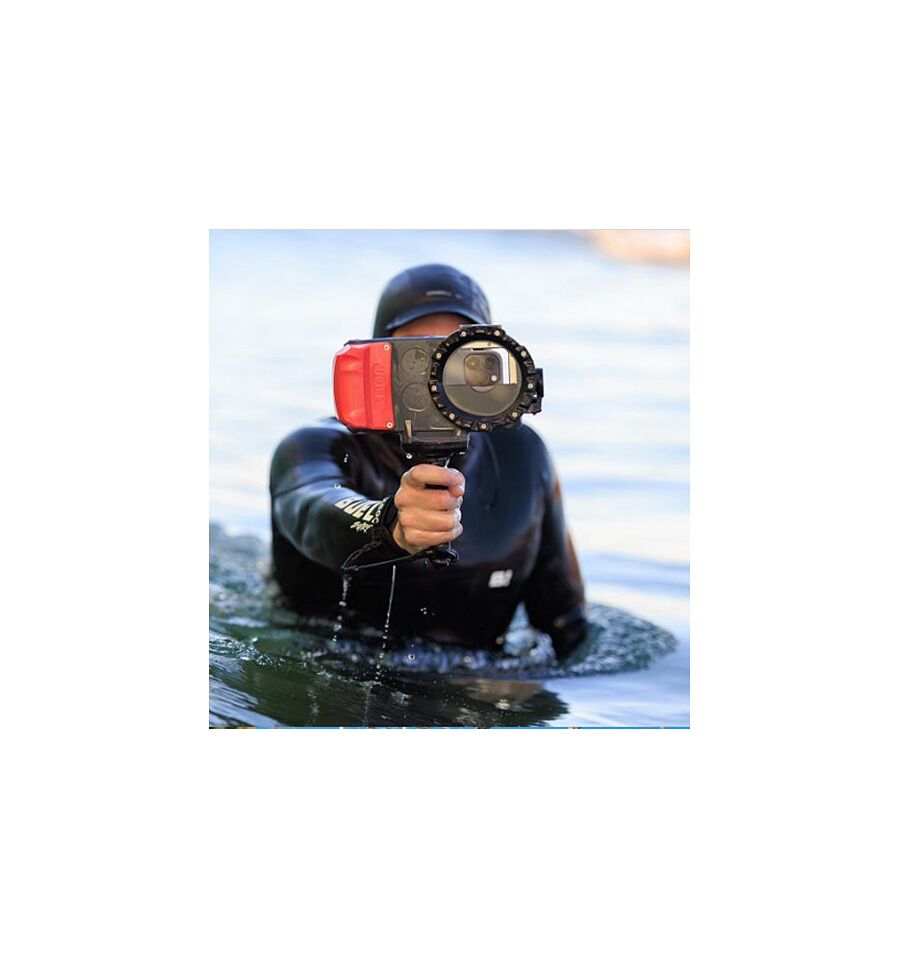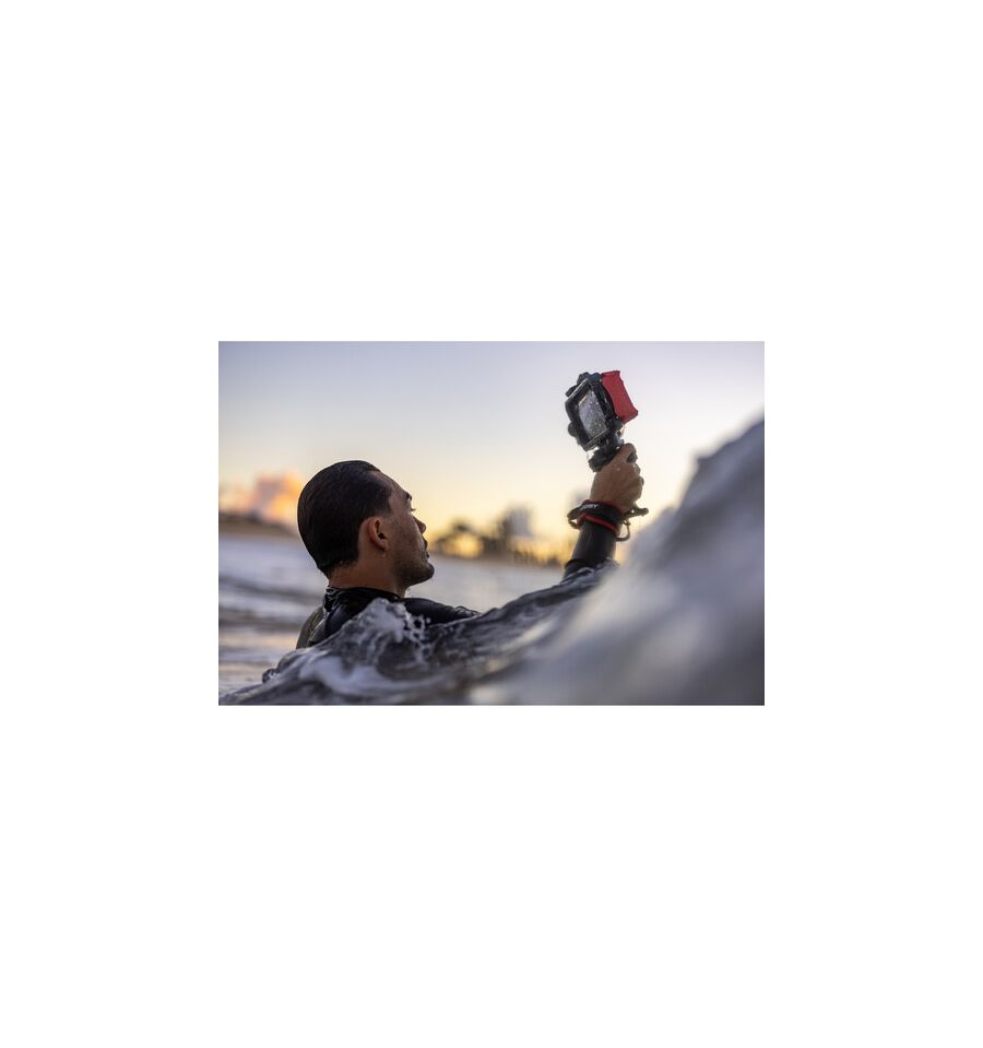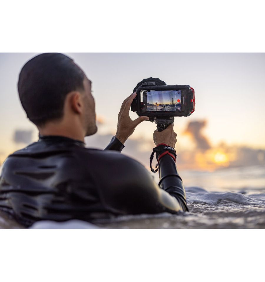 Con la empuñadura del obturador Bluetooth montada en su funda impermeable JOBY SeaPal para teléfonos inteligentes, encuadrar y capturar la toma perfecta es fácil.