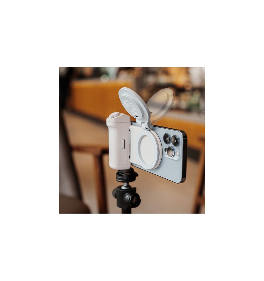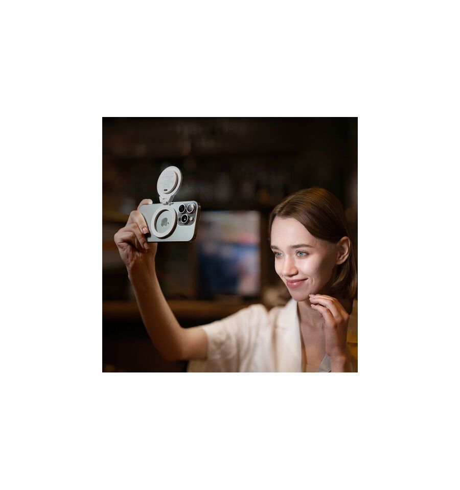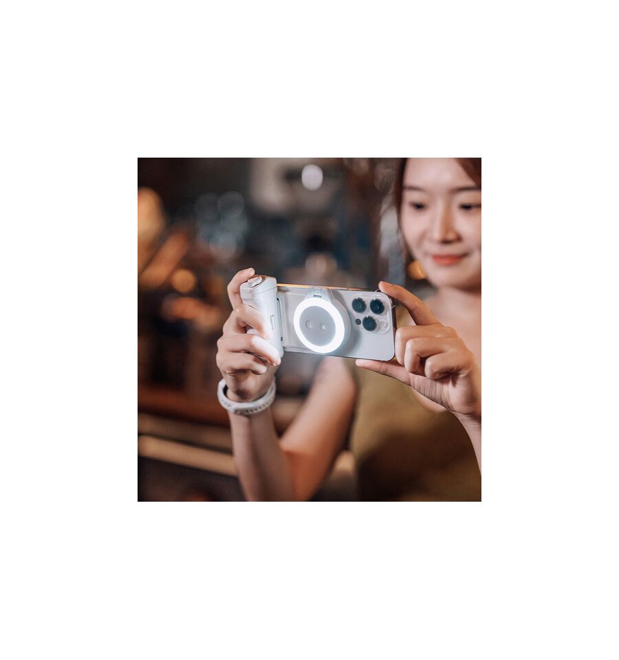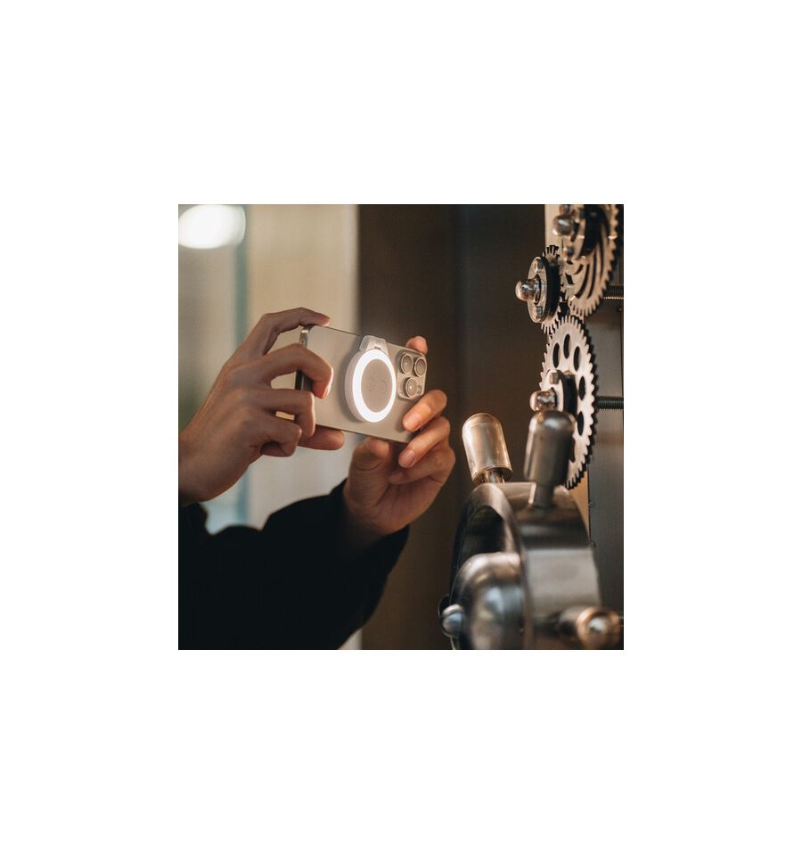 El PGYTECH MagGlow Phone Fill Light está diseñado específicamente para mejorar la iluminación en tus tomas, garantizando resultados profesionales en cualquier situación. Su color gris brumoso no solo aporta un toque moderno, sino que también se integra perfectamente con cualquier dispositivo, haciendo que su uso sea tanto práctico como estéticamente agradable. Este dispositivo ofrece múltiples niveles de brillo y temperatura de color, permitiéndote adaptarte a diversas condiciones de iluminación y crear el ambiente perfecto para cada captura.