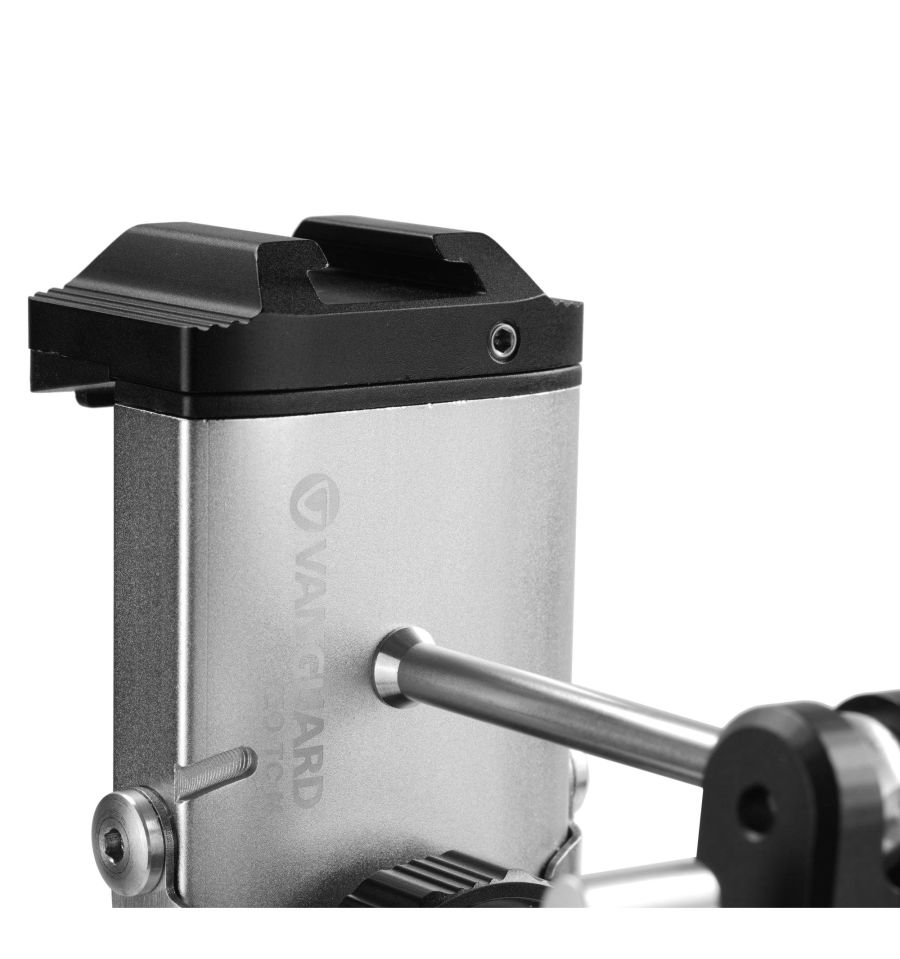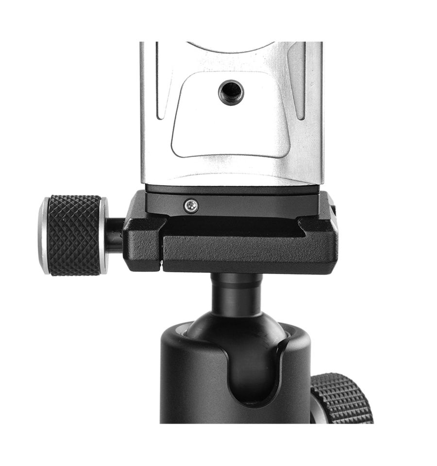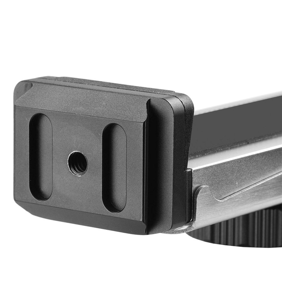 Cuando se conecta a un trípode, también hay dos agujeros de rosca de 1/4" que permiten conectar brazos adicionales.