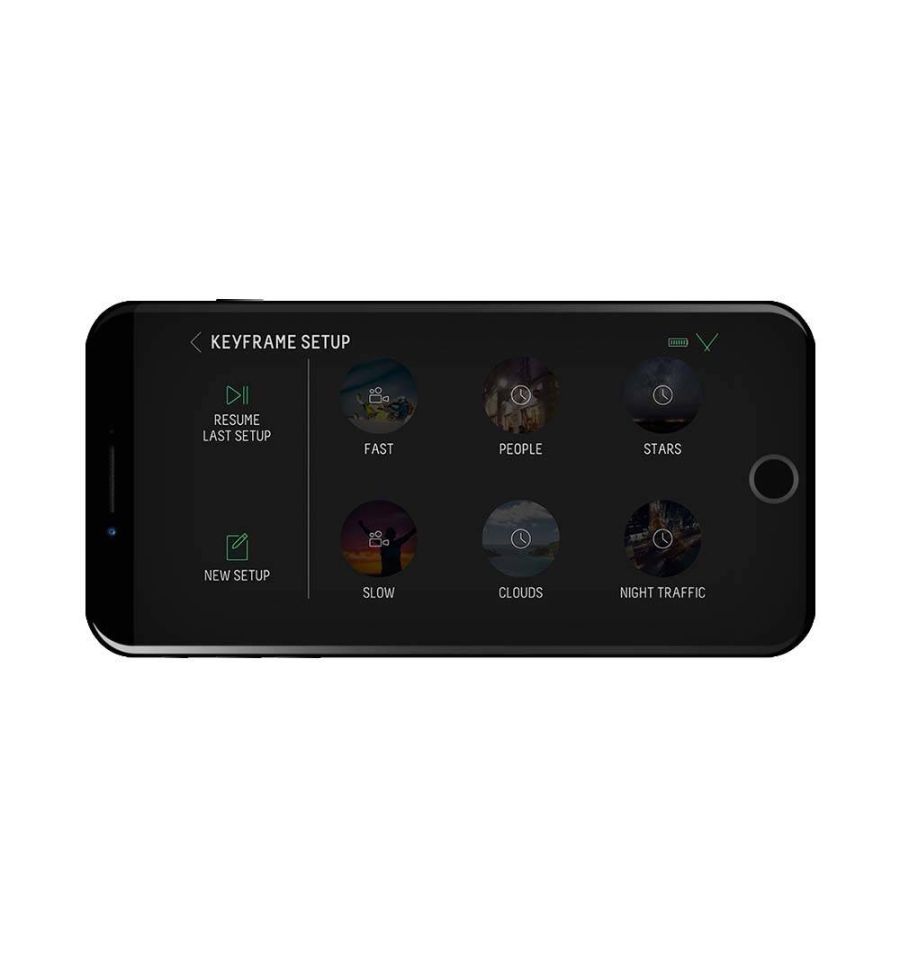 Dispositivo increíblemente compacto, encajando en una bolsa normal para cámaras con facilidad. Es capaz de realizar un movimiento completo de 180º de inclinación (tilt) y un movimiento panorámico (pan) de 360º. Con batería de li-ion extraíble y pantalla de control LCD para una rápida configuración.