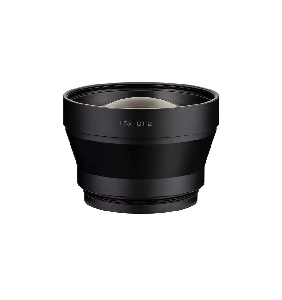 El teleconvertidor GT-2 de Ricoh está diseñado para usarse con el adaptador de lentes GA-2 y la cámara digital GR IIIx. Cuando está montada, la cámara detecta automáticamente el GT-2 como lente de conversión tele y extiende la distancia focal a aproximadamente un equivalente de 75 mm con el modo de recorte de la cámara, o a aproximadamente 107 mm en el modo de recorte secundario.