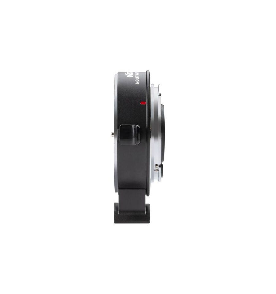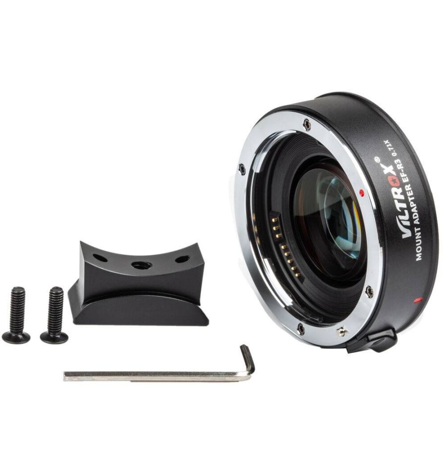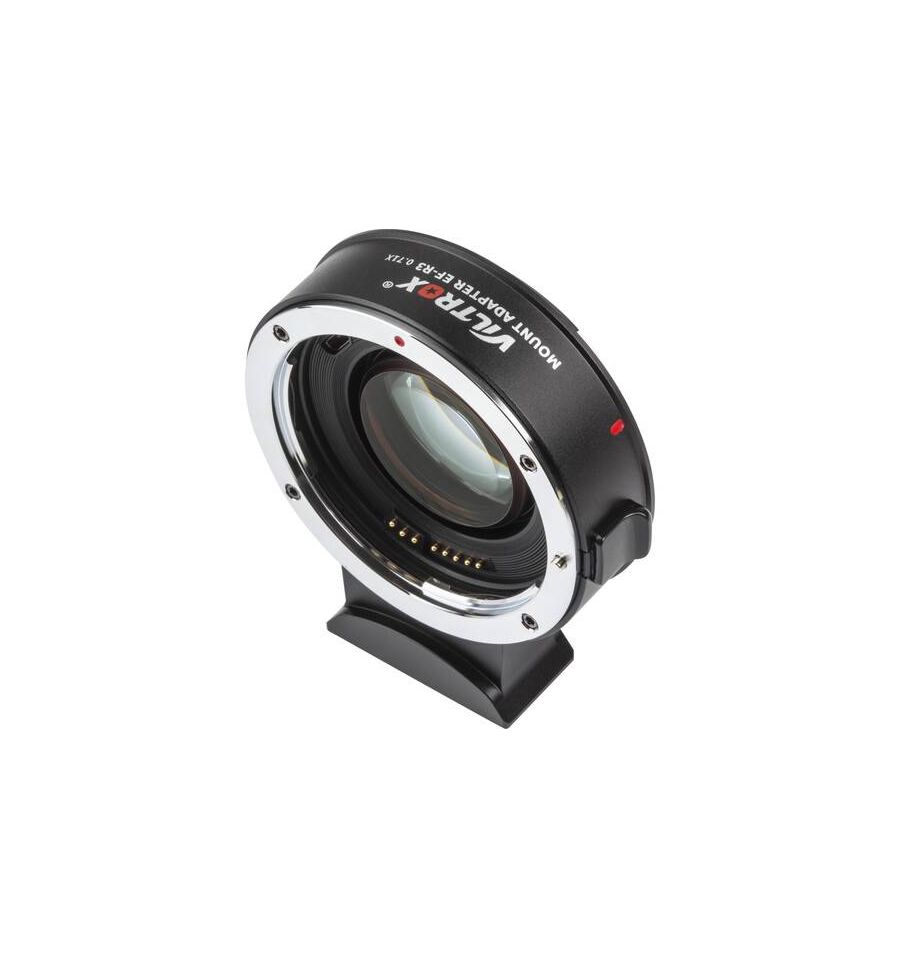 Este adaptador amplificador de velocidad EF-R3 de 0,71 de Viltrox permite utilizar un objetivo con montura EF de Canon en un cuerpo de cámara con montura RF de Canon y en cuerpos de cine seleccionados. La unidad incorpora un multiplicador óptico de 0,71x y se admite la comunicación electrónica entre la cámara y el objetivo, lo que permite el enfoque automático, la estabilización de imagen y la transferencia de datos Exif. Con algunos objetivos, el rango máximo de enfoque puede verse afectado ya que la distancia desde el objetivo al sensor de la cámara cambia ligeramente y hay un aumento de 1 paso para la cámara sobre el rango de apertura del objetivo. Además, las funciones de algunos objetivos no están completamente disponibles según el cuerpo de la cámara. Se proporciona un puerto micro-USB para actualizaciones de firmware, y el adaptador cuenta con un pie extraíble con una toma de trípode de 1/4 "-20 para un fácil montaje.