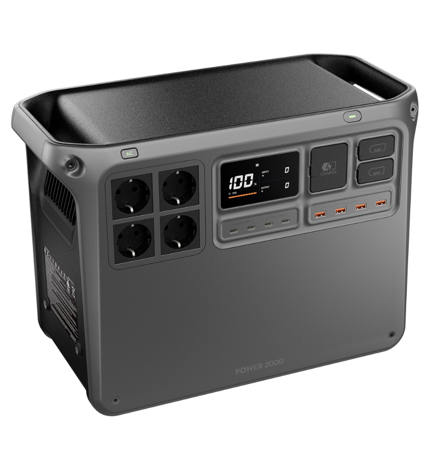 (Cada 10,00 € gastado = 1 punto, 1 punto = 0,10 € de descuento).La DJI Power 2000 ofrece una abundante capacidad de 2048 Wh en un tamaño compacto de 16 pulgadas, ideal para cualquier coche o maletero. Los puertos, botones y pantallas están integrados en la parte frontal de la unidad, facilitando su funcionamiento y manteniendo el espacio ordenado durante el almacenamiento.