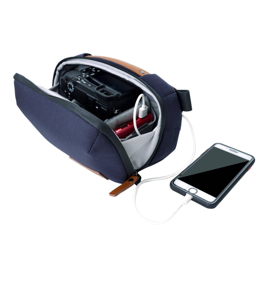 Las bolsas VEO CITY CB tienen también un pequeño acceso para cable, que te permite llevar un cargador portátil y cargar tus dispositivos sobre la marcha, o utilizar los auriculares de cable con el dispositivo guardado en la bolsa.