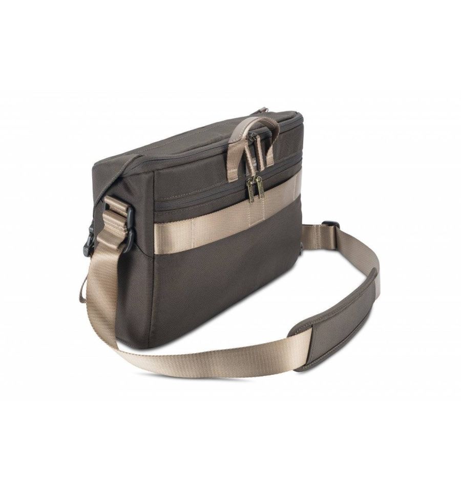 La VEO GO 34M se puede llevar cómodamente cruzada en el pecho o colgada del hombro cómodamente con su correa acolchada, mientras que el asa se presta perfectamente para el agarre, además de proporcionar una solución de suspensión oportuna.