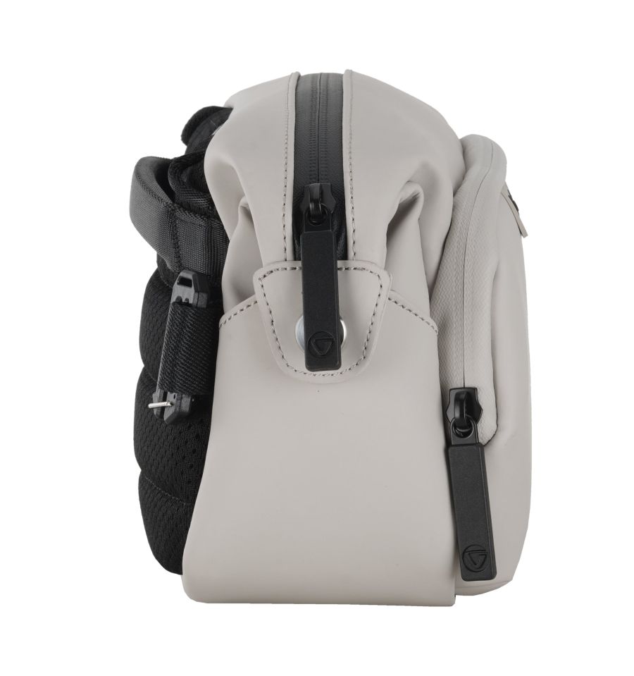 La seguridad del equipo es prioritaria: incorpora cremalleras ocultas e impermeables que bloquean eficazmente el paso del polvo y la humedad. Para el transporte, dispone de un asa superior ergonómica y una correa extraíble para llevar al hombro con total movilidad. Además, su diseño modular permite acoplarla fácilmente a las mochilas de la serie VEO Lite, ampliando la capacidad de almacenamiento de forma práctica.