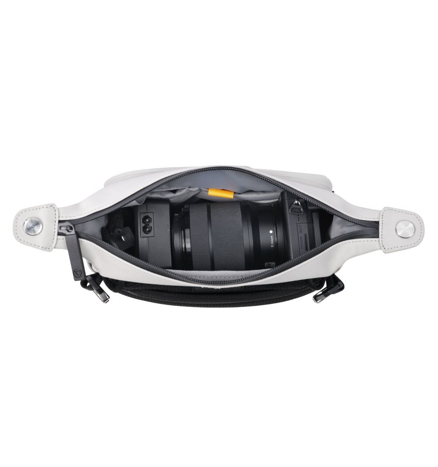 Su compartimento principal acolchado está optimizado para dispositivos como la serie Canon PowerShot, cámaras de acción tipo DJI Pocket o DJI Action, e incluso mini drones. Además, permite organizar de forma eficiente un smartphone junto con accesorios esenciales como micrófonos, mini trípodes o baterías externas mediante sus bolsillos interiores y el bolsillo frontal con cremallera.