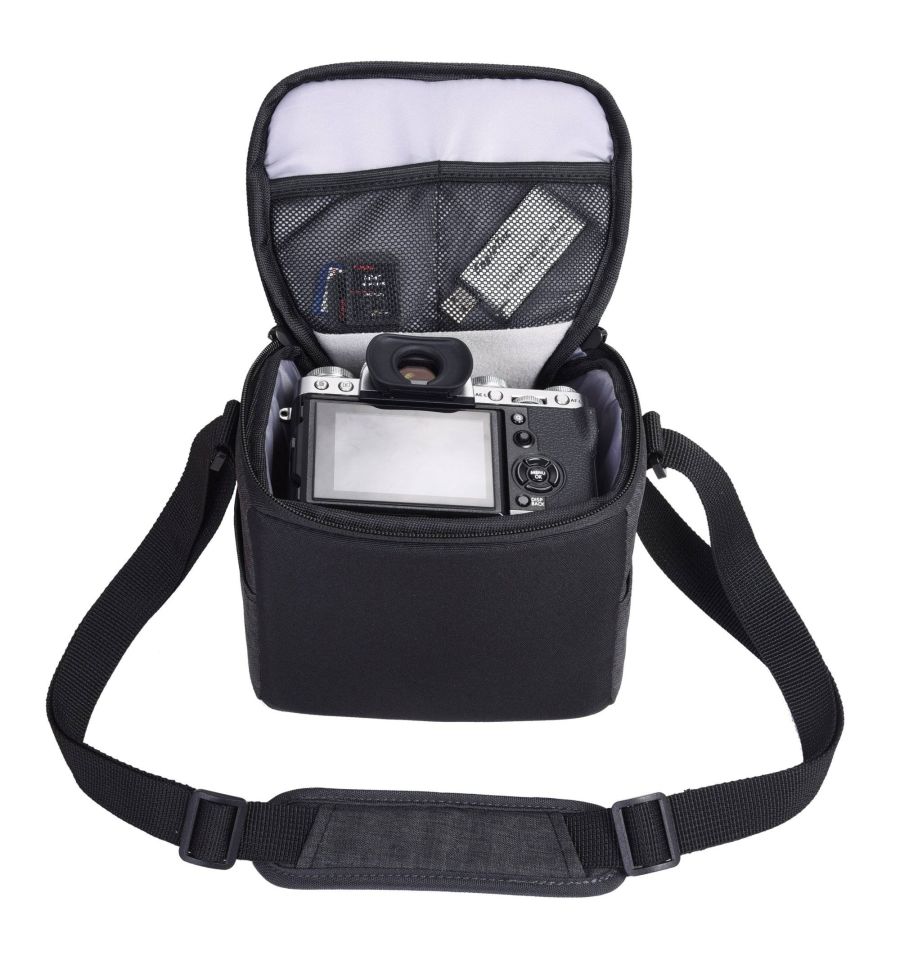 Cuando llevamos equipos compactos, queremos que nuestras bolsas se ajusten perfectamente al equipo que llevamos dentro. VESTA ASPIRE 15 está hecha a medida para proteger una cámara digital DSLR con un objetivo incorporado, un flash y accesorios. Los bolsillos estratégicamente colocados ayudan a organizar todos los demás elementos esenciales, como las tarjetas de memoria, los cables, la batería, el cargador, el teléfono inteligente y también un trípode de mesa Vesta TT1 exactamente donde uno los necesita.