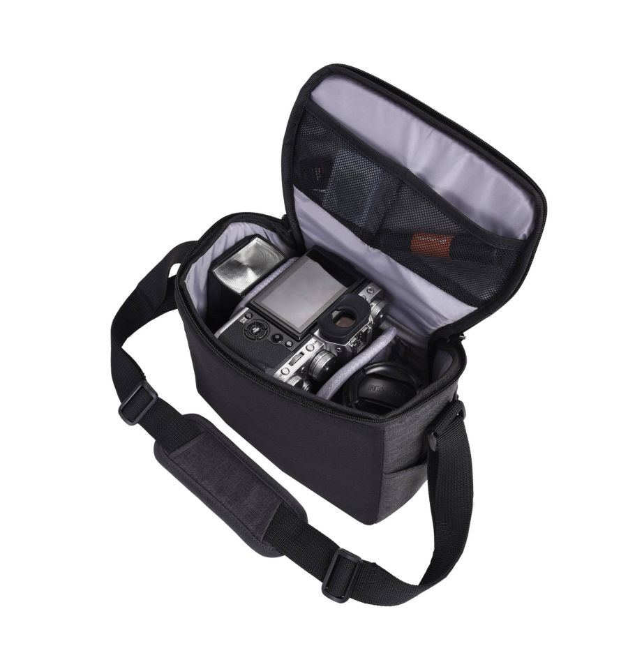 Cuando llevamos equipo compacto, queremos que las bolsas se ajusten perfectamente al equipo que llevamos dentro. VESTA ASPIRE 21 está diseñada para proteger una cámara digital DSLR con un objetivo mediano incorporado, 1 ó 2 objetivos adicionales, un flash y accesorios. Los bolsillos estratégicamente colocados ayudan a organizar todos los demás elementos esenciales, como las tarjetas de memoria, los cables, la batería, el cargador, el teléfono inteligente y también un trípode de mesa Vesta TT1 exactamente donde uno los necesita.