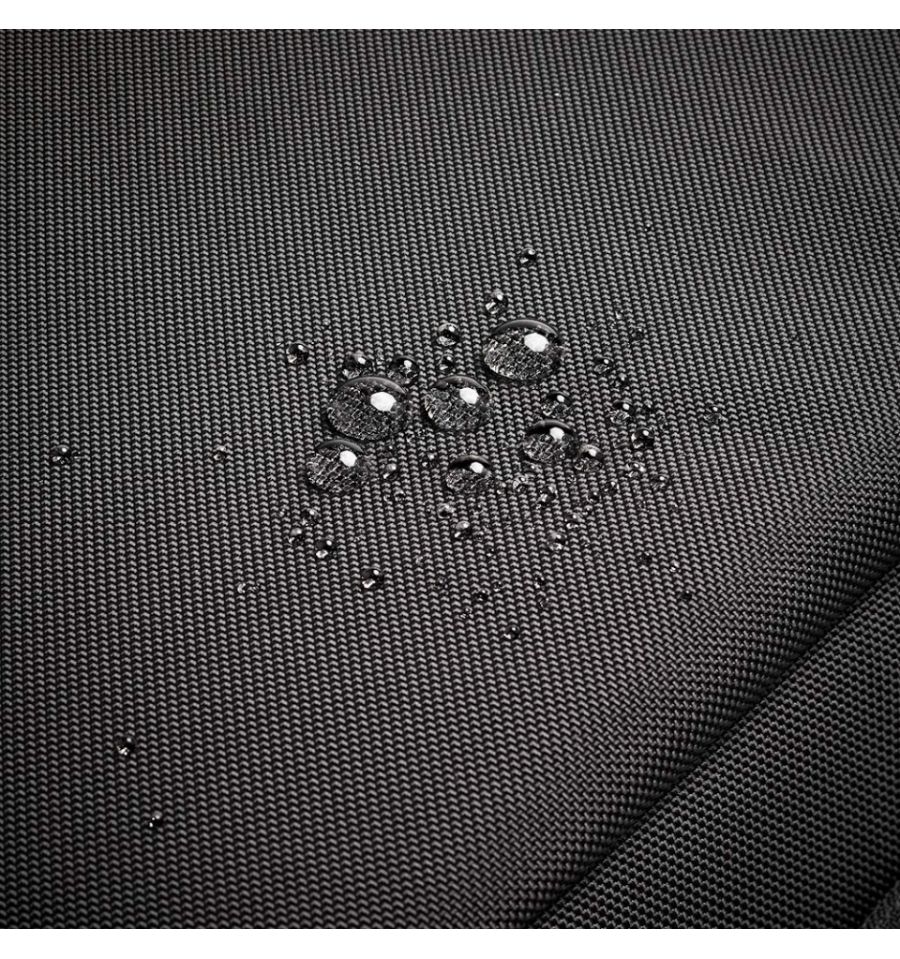 El tejido exterior está tratado para hacer que la bolsa sea repelente al agua, lo que puede reforzarse aún más con la funda para la lluvia suministrada en caso de condiciones meteorológicas adversas.