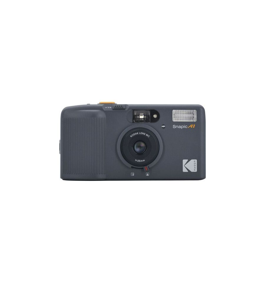 Una cámara compacta moderna de 35 mm con un objetivo gran angular de 25 mm de cristal, la Snapic A1 35 mm de Kodak es una compacta para llevar recuerdos en cualquier lugar. El enfoque manual de dos zonas permite un ajuste rápido entre los ajustes de paisaje y primer plano, y un flash incorporado permite una exposición adecuada con poca luz.