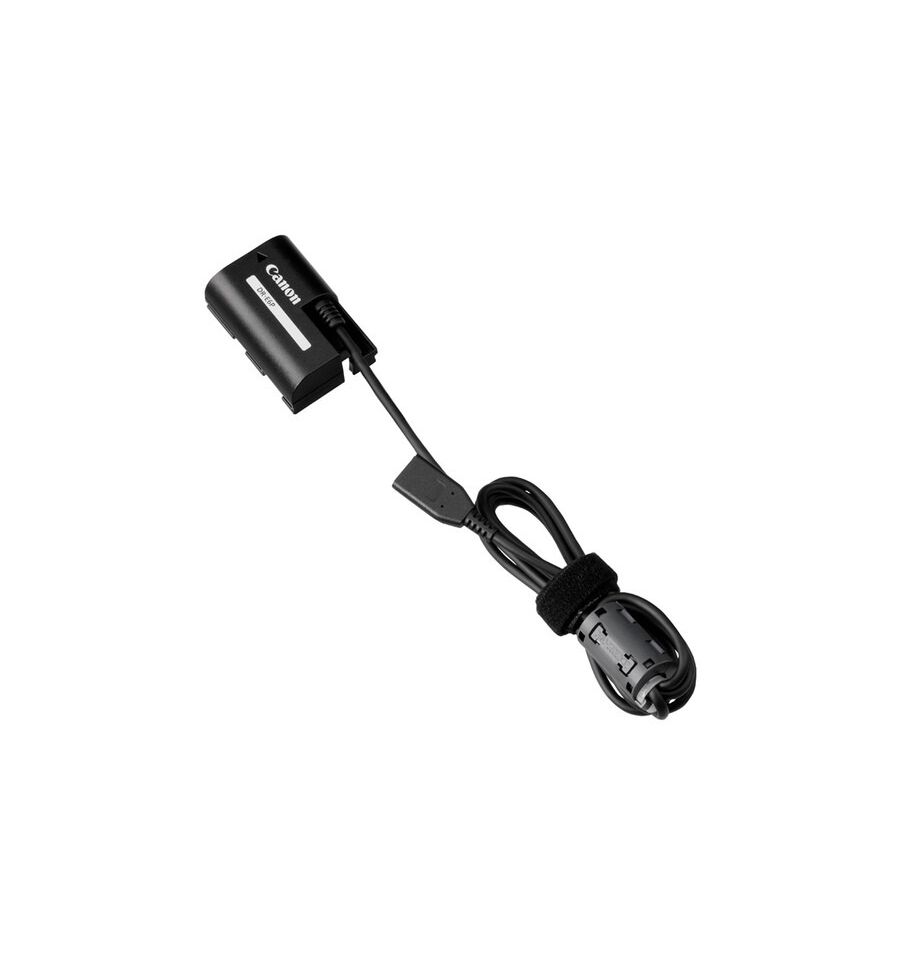 Alimente su cámara Canon EOS R5 Mark II con una fuente de alimentación externa mediante el acoplador de CC DR-E6P de Canon. Este dispositivo le permite suministrar energía directamente a la cámara utilizando una fuente compatible, tal como el adaptador de corriente USB PD-E2, que se vende por separado, permitiendo el funcionamiento de la cámara sin necesidad de una batería.