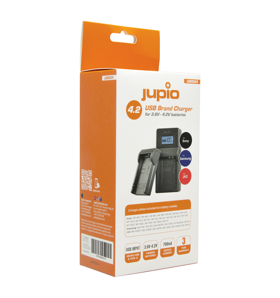 Cargador para baterías SONY / JVC / Samsung 3.6V-4.2V USB Jupio