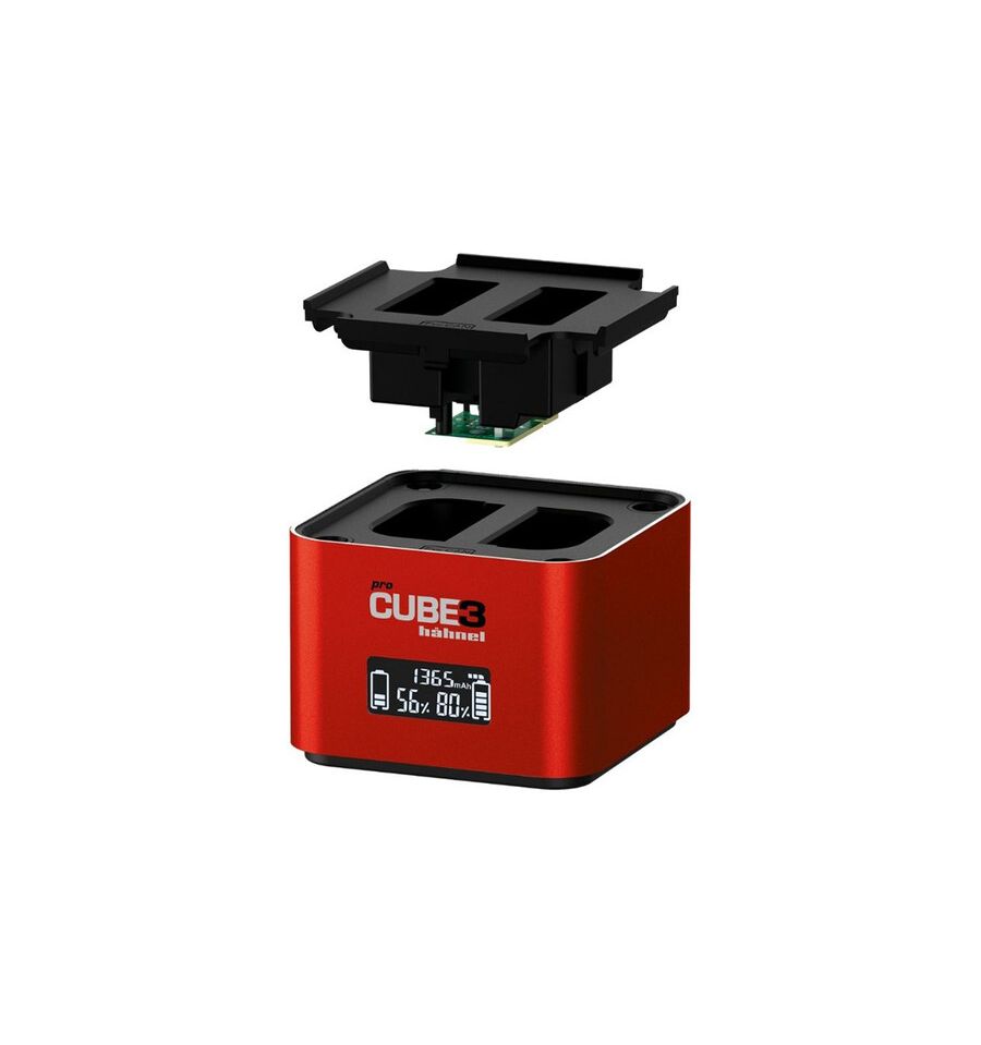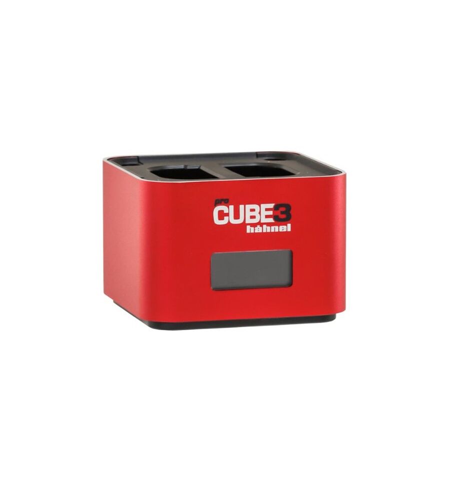 El cargador profesional ProCube 3 con un cargador de 2 bahías puede cargar dos baterías de iones de litio simultáneamente. El cargador también cuenta con una placa de carga para cuatro baterías NiMH.