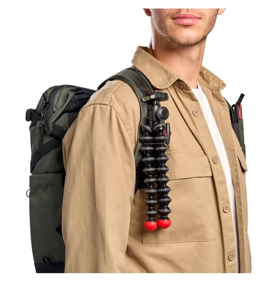 La bolsa también cuenta con un accesorio lateral para un trípode de pequeño tamaño en un lado y un soporte para botellas de agua en el otro. En la parte delantera hay un práctico bolsillo externo para tener los objetos esenciales siempre al alcance de la mano. Las dos correas de los hombros, cuando están en modo mochila, cuentan con un soporte para el smartphone y un pequeño accesorio para el trípode, para tener siempre a mano tus herramientas de creación.
