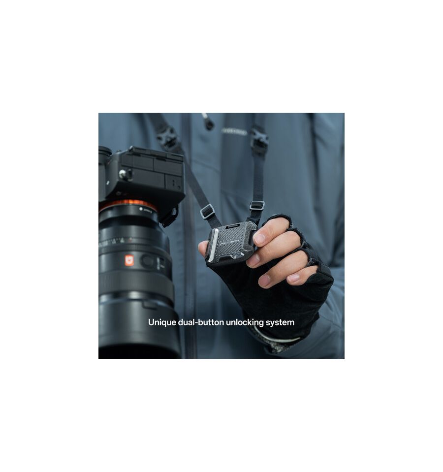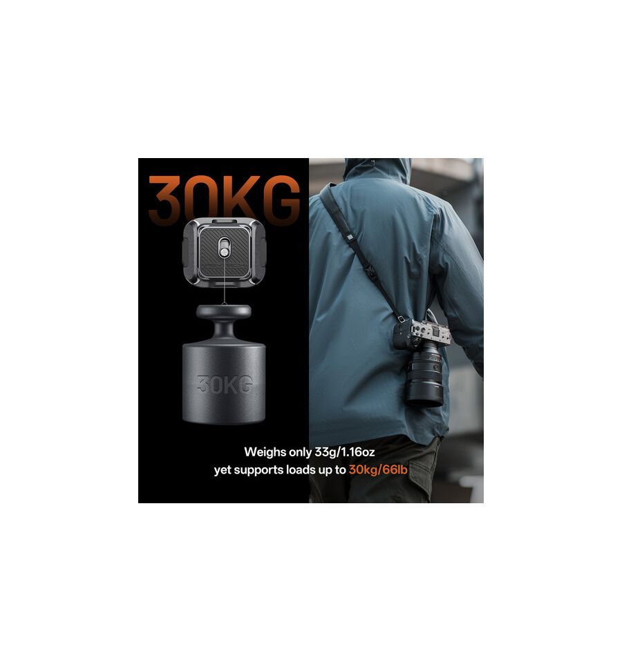 - Montaje rápido en un solo paso para cambiar fácilmente entre correas, trípodes y estabilizadores.