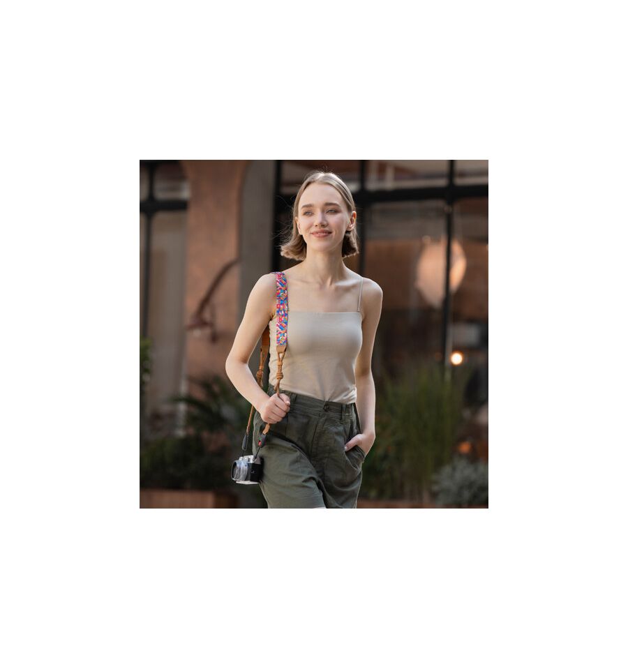 Con un ajuste que varía entre 115 cm y 145 cm de largo y un ancho de 4 cm, la Camera Shoulder Strap Air (Bohemian) S se adapta cómodamente a diferentes tipos de cuerpos, garantizando una experiencia ergonómica durante largas sesiones de fotografía. Su diseño no solo es atractivo, sino que también prioriza la comodidad, permitiendo que los fotógrafos se concentren en capturar momentos sin distracciones.