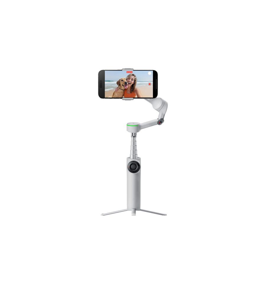 El Flow 2 Pro está diseñado para que creadores, vloggers, familias y viajeros agreguen un toque cinematográfico al contenido de su teléfono. Convierte tu smartphone en una herramienta de creación de contenidos con Insta360 Flow 2 Pro, el estabilizador impulsado por IA. Simplemente despliéguelo una vez y vaya sin necesidad de desenroscar o incluso presionar el botón de encendido. Cuando no está en uso, el cardán se pliega a un tamaño compacto para caber en una bolsa o bolsillo.