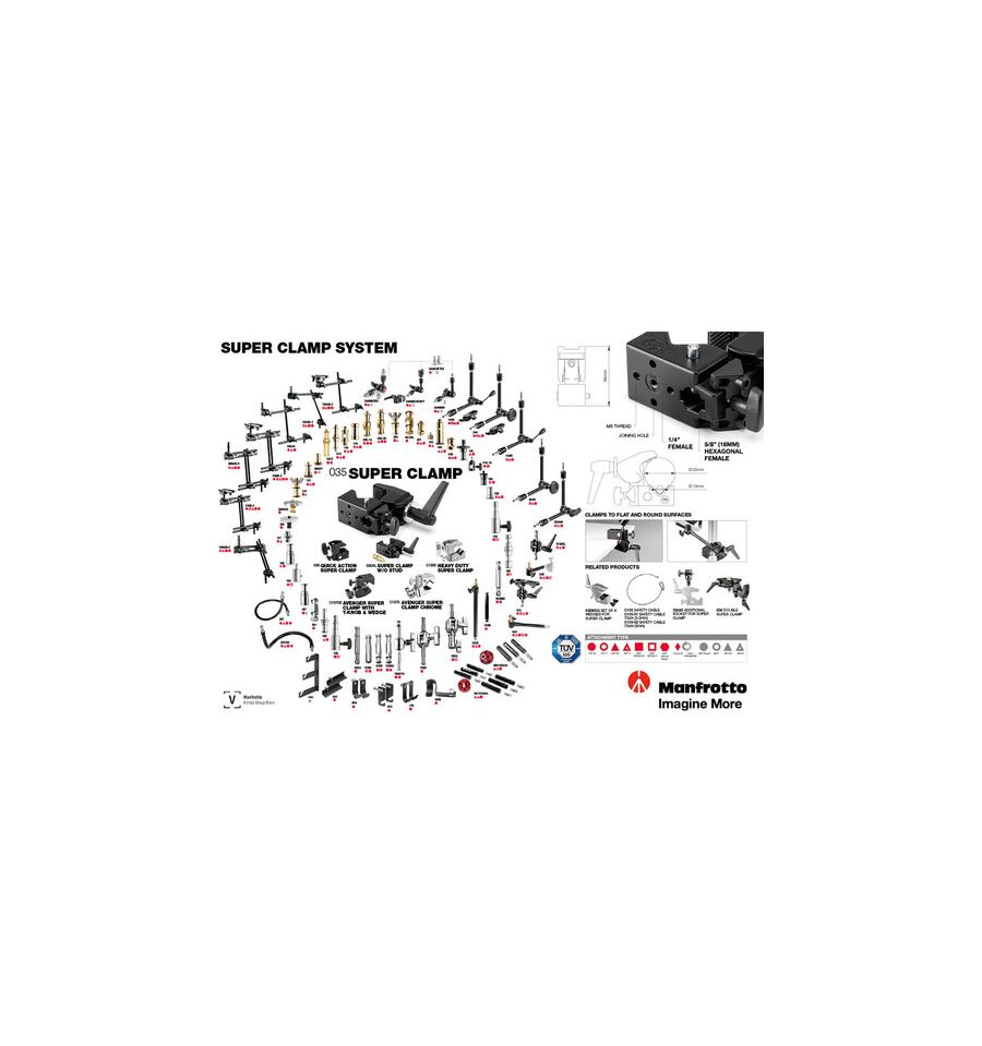 La pinza Super Clamp sin abrazadera y de aluminio, también gracias al certificado de seguridad Tüv, es la pinza perfecta para los profesionales que buscan un accesorio práctico y confiable. Su diseño ha sido estudiado para garantizar un montaje fácil, así como un acabado resistente capaz de hacer frente incluso a los disparos más exigentes.