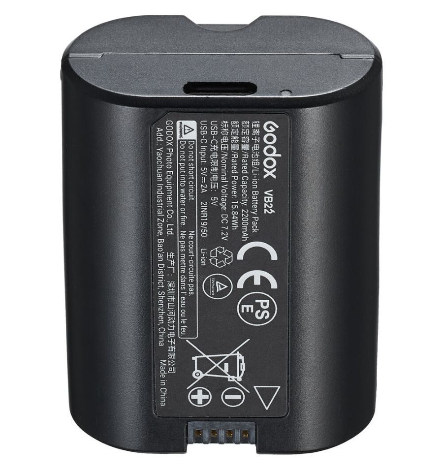 Godox incluye el cable USB‑C y el adaptador de carga en la caja.