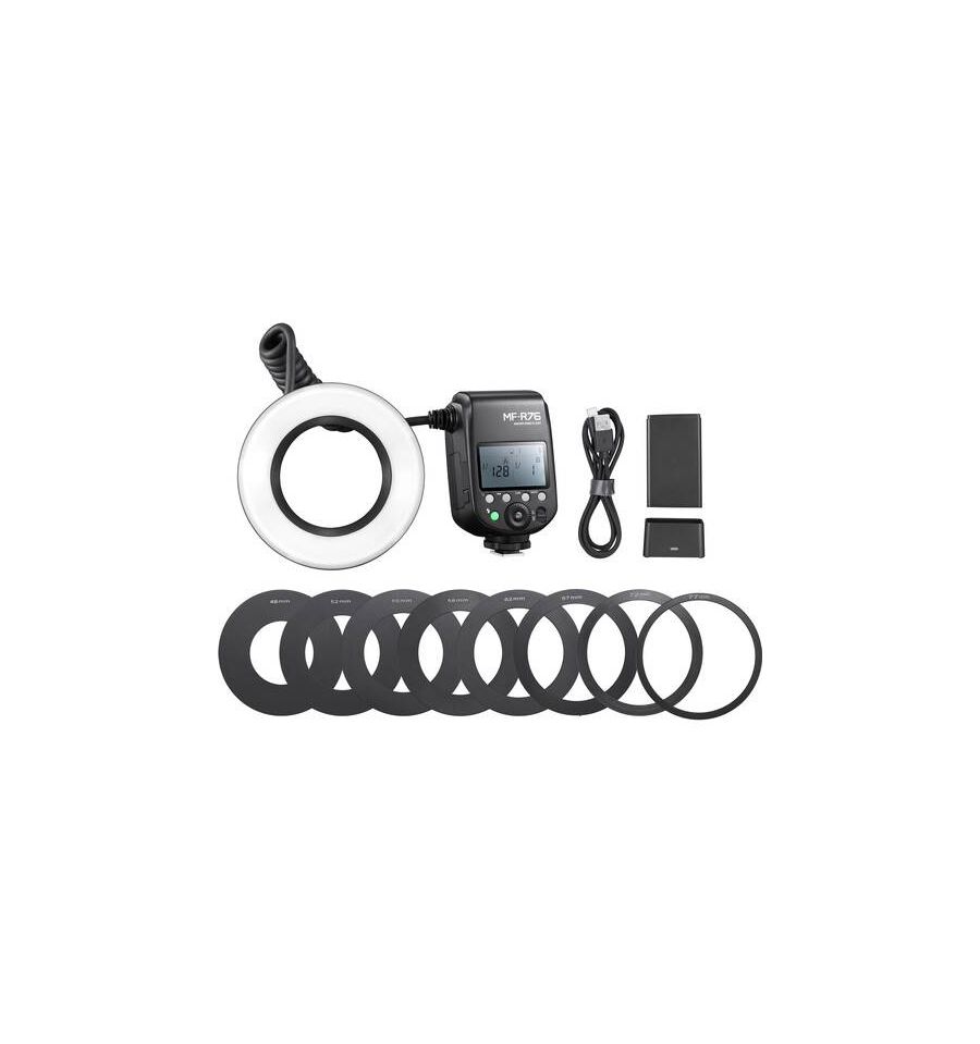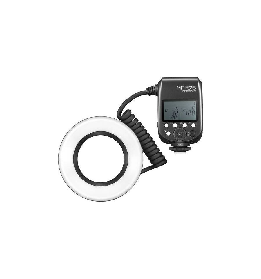 Compatible con cámaras Canon, Nikon, Sony, Panasonic, Olympus, Fuji y Pentax DSLR con zapata para accesorios, el flash anular macro MF-R76 de Godox ilumina al sujeto con una luz suave y uniforme, que es ideal para revelar pequeños detalles en primer plano.