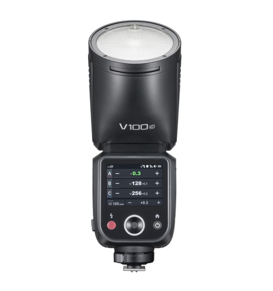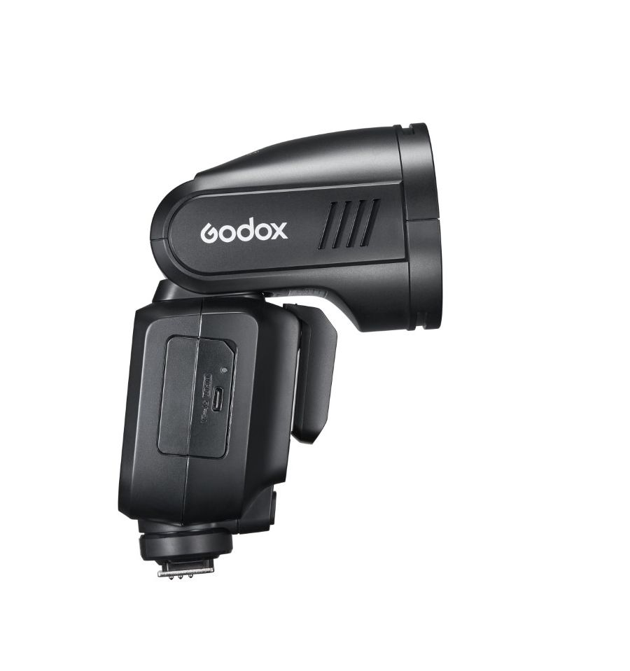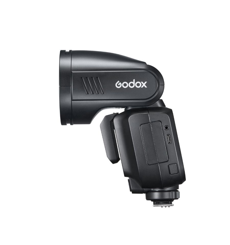 Fuente de alimentación: Alimentado por la misma batería que el V1 Pro, el V100 puede realizar hasta 400 destellos a plena potencia, ofreciendo un rendimiento prolongado. El puerto USB-C agrega comodidad para la carga, y las baterías también pueden cargarse con el cargador Godox VC26T (no incluido). Además, el V100 incluye un puerto para el módulo de alimentación PB960 (no incluido), que reduce el tiempo de reciclaje a solo 0,8 segundos cuando está conectado.