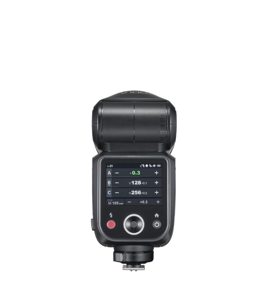 Más posibilidades: El módulo de flash desmontable, conocido del modelo V1 Pro, permite iluminar el primer plano incluso cuando el cabezal principal del flash apunta, por ejemplo, al techo. Esta función abre nuevas opciones creativas en fotografía de retratos y eventos. Además, la luz de modelado LED incorporada con 10 niveles de ajuste de brillo permite una visualización precisa de la luz o puede usarse como luz de relleno.
