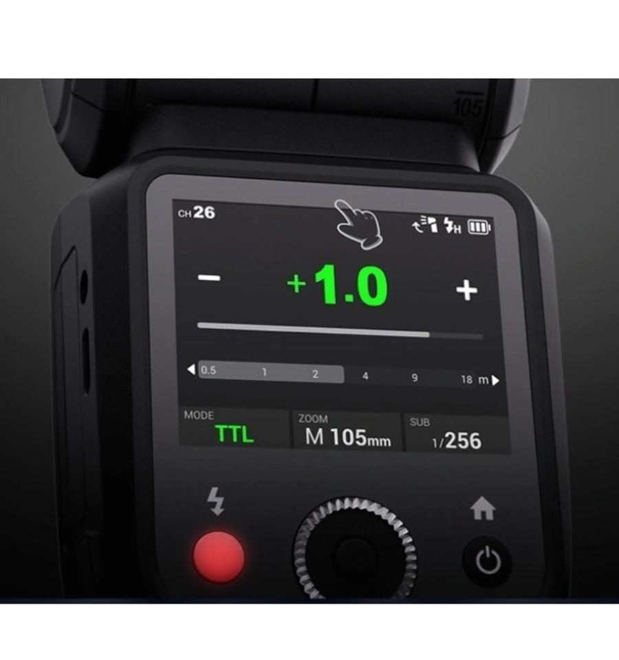 Pantalla práctica: Una novedad es la pantalla táctil a color de 2,3 pulgadas y alta sensibilidad. Con un menú intuitivo, los fotógrafos pueden ajustar rápidamente los niveles de potencia, cambiar entre modos, seleccionar funciones adicionales o emparejar dispositivos con un solo toque, mejorando significativamente la eficiencia del flujo de trabajo.