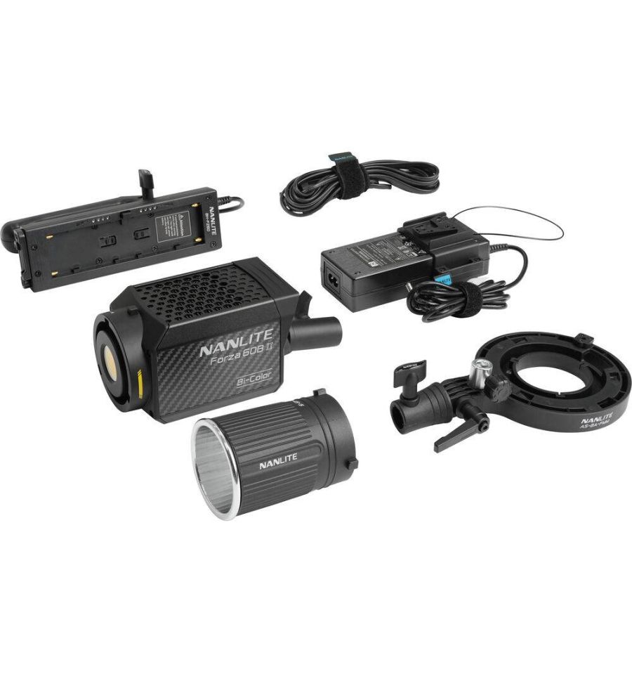 Adoptando la calidad de la luz y la forma compacta y liviana de los modelos Forza 60 y 60B, Nanlite ha mejorado el rendimiento y la versatilidad de su luz LED bicolor Forza 60B II de segunda generación . Con un diseño intuitivo con una temperatura de color ajustable de 2700-6500K, este foco está equipado con un mini reflector de 45°, un puerto DMX con bloqueo, Bluetooth incorporado para control inalámbrico directo a través de la aplicación y un ventilador integrado más silencioso. Además, se incluyen una empuñadura de batería para baterías NP-F y un adaptador de CA con una placa de batería de montaje en V para opciones de energía extendida.