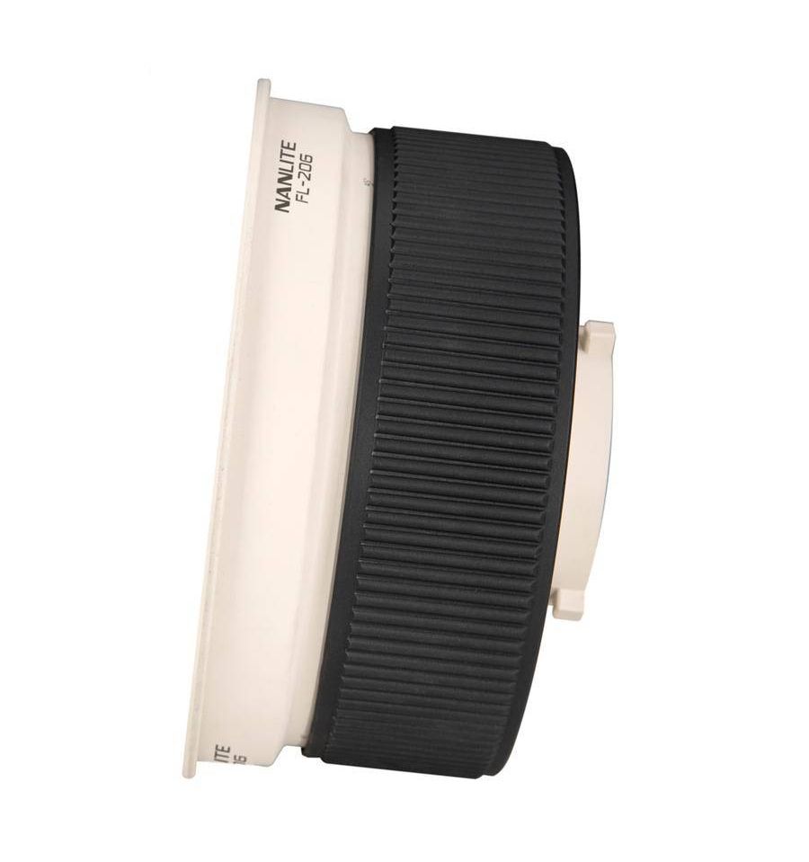 La lente Fresnel Nanlite FL-20G es una lente Fresnel de vidrio con una carcasa de longitud ajustable que enfoca la salida de luz de Nanlite Forza 200, Forza 300 y Forza 500.