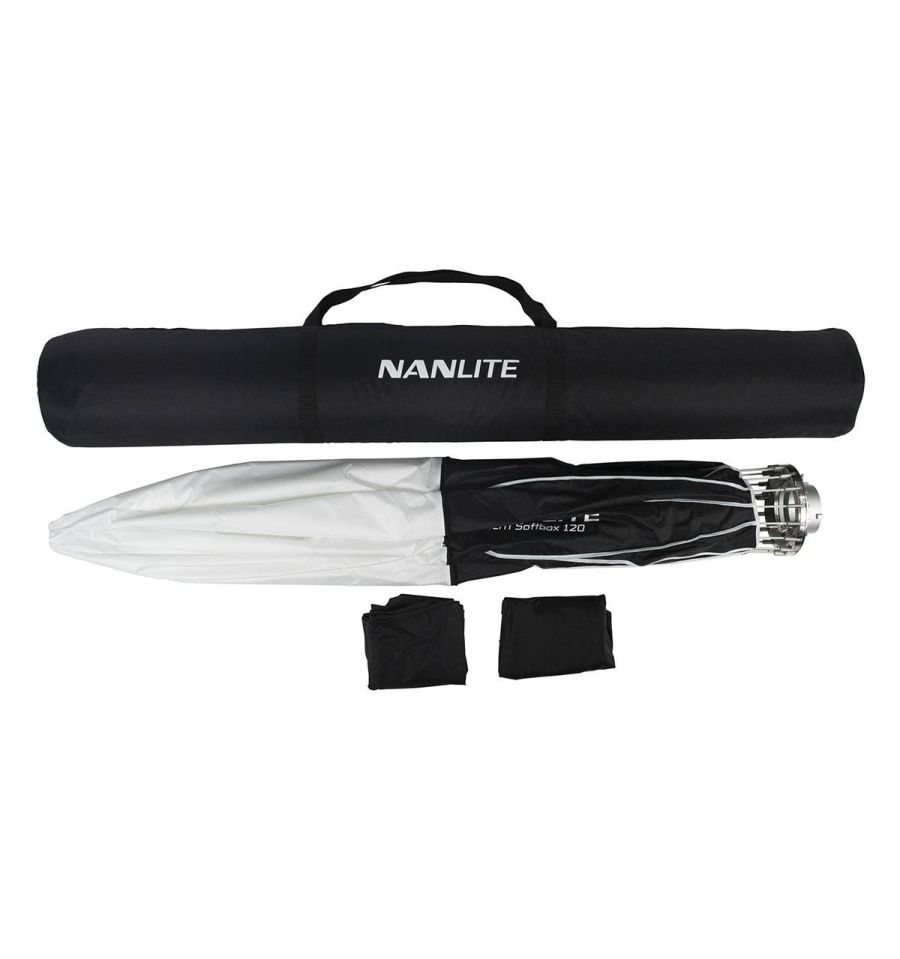 La linterna softbox Nanlite LT-120 tiene montura Bowens estándar para Forza 200, 300, y 500, y se adapta a cualquier foco con montura Bowens.