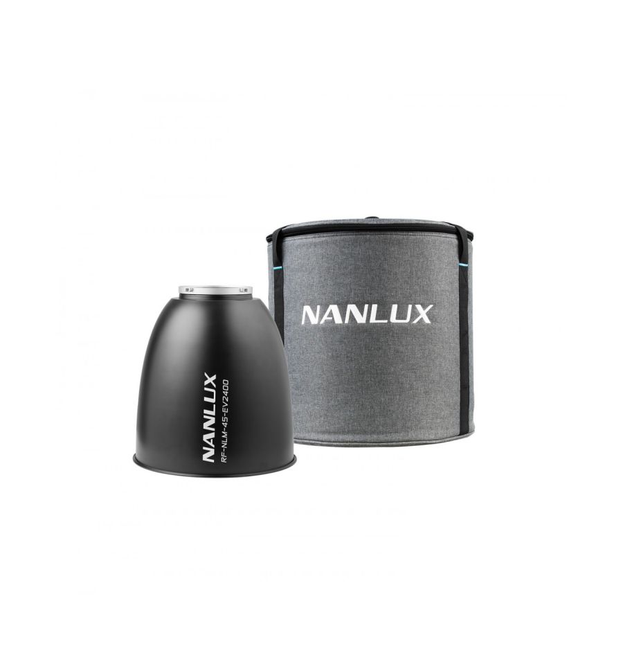 El reflector Nanlux para Evoke 2400 es un modificador especialmente diseñado con una montura NL para el Evoke 2400. El reflector tiene un ángulo de haz medio de 45° y viene con un estuche blando para su almacenamiento y transporte.