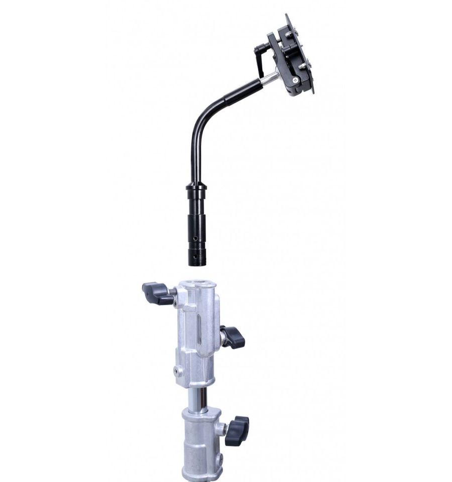 El soporte central con rótula esférica para luces de la serie TK de Nanlux se puede montar en el centro en la parte posterior del dispositivo, con un receptor estándar de 5/8 "o un pin junior. Receptor de 3/8 ". La cabeza esférica y el brazo brindan opciones de ubicación que no están disponibles con un yugo estándar.