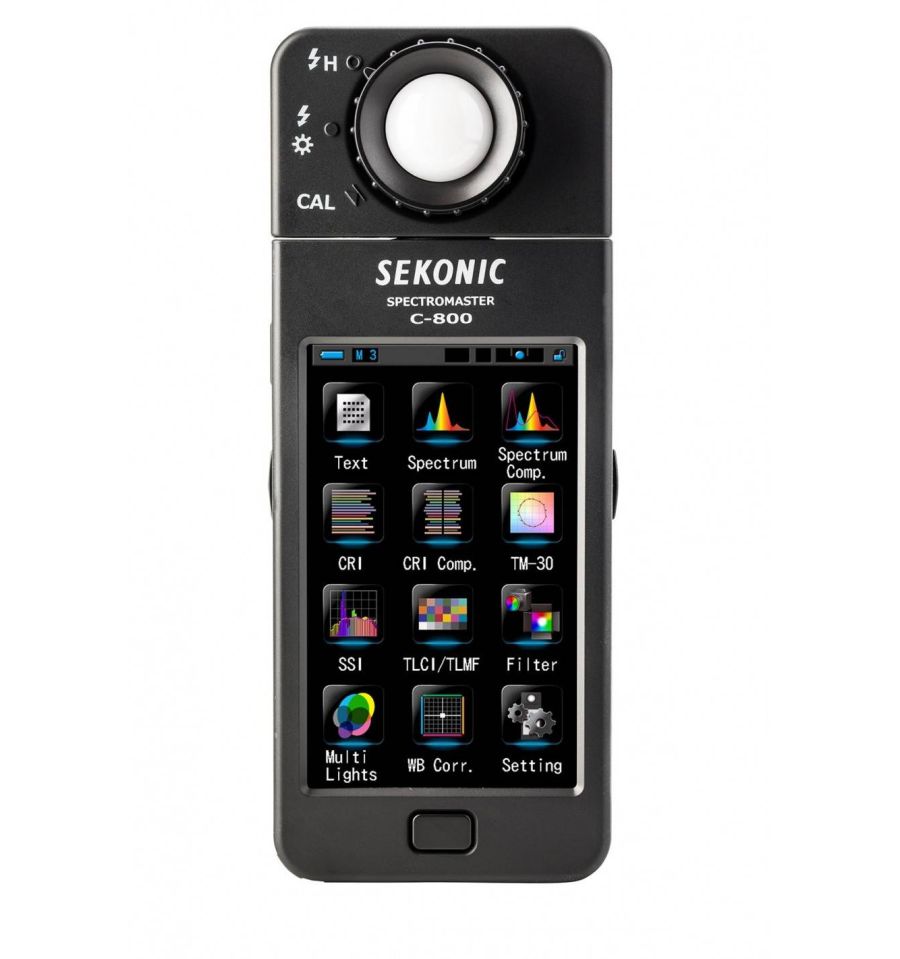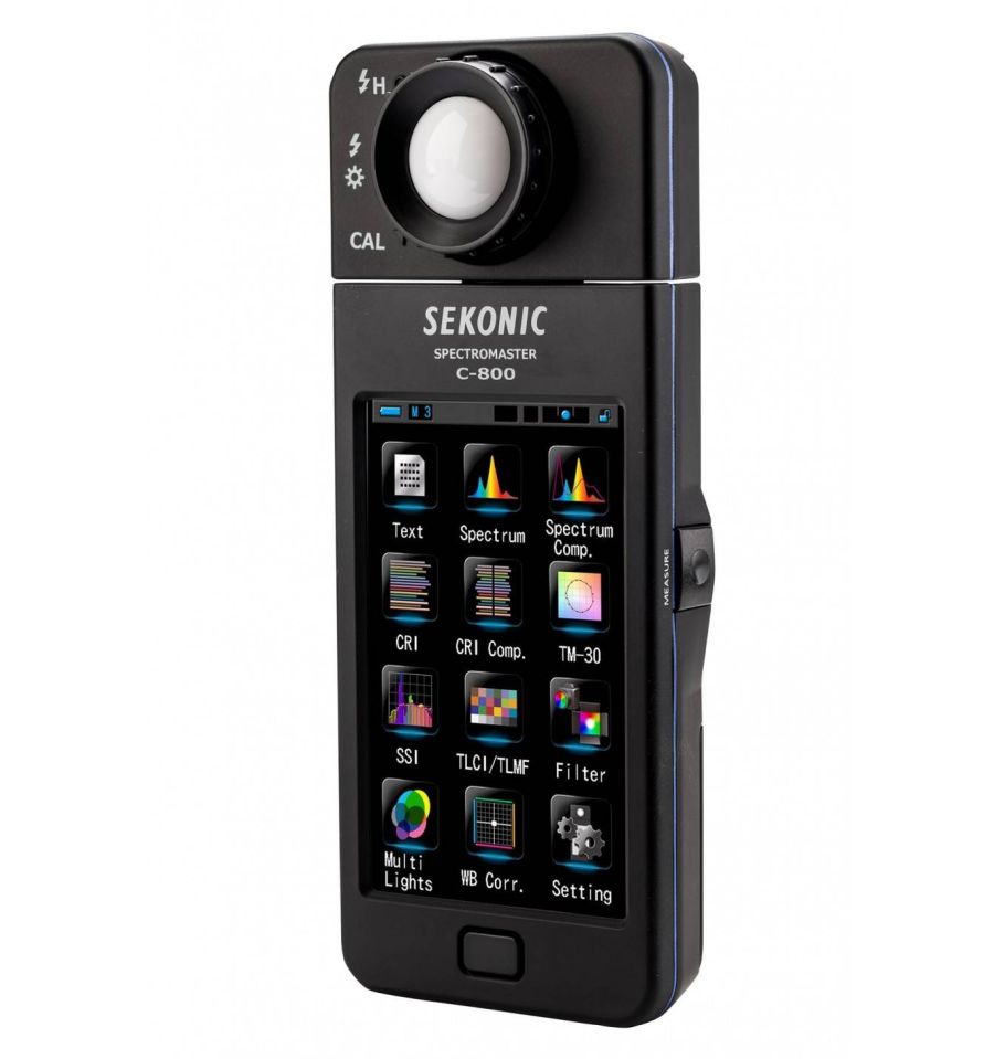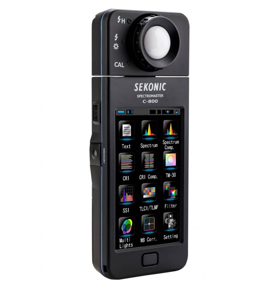 El Sekonic SpectroMeter C-800 es un medidor de color de espectro completo capaz de medir con precisión todo tipo de luz: natural, flash, LED, HMI, tungsteno y fluorescente.