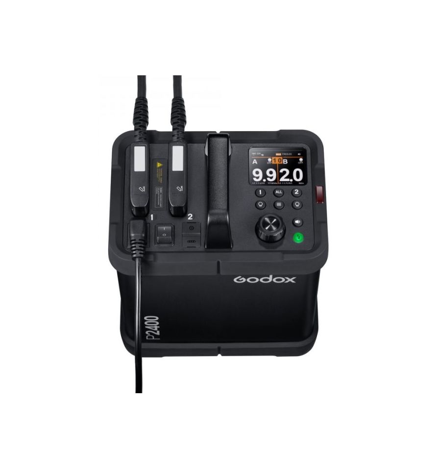 Power Pack P2400 La, la fuente de luz flash más potente y a la vez más innovadora de Godox. El generador de estudio profesional P2400 es una herramienta para los profesionales más exigentes que requieren un equipo fiable, potente y preciso. Este generador ofrece una duración de flash breve y está listo para una nueva emisión en tan solo 0,7 segundos, además de un control de potencia preciso (1,0-10 o 1/512 - 1/1), capacidad para dos cabezales de flash y una potente luz de modelado de 60 W."
