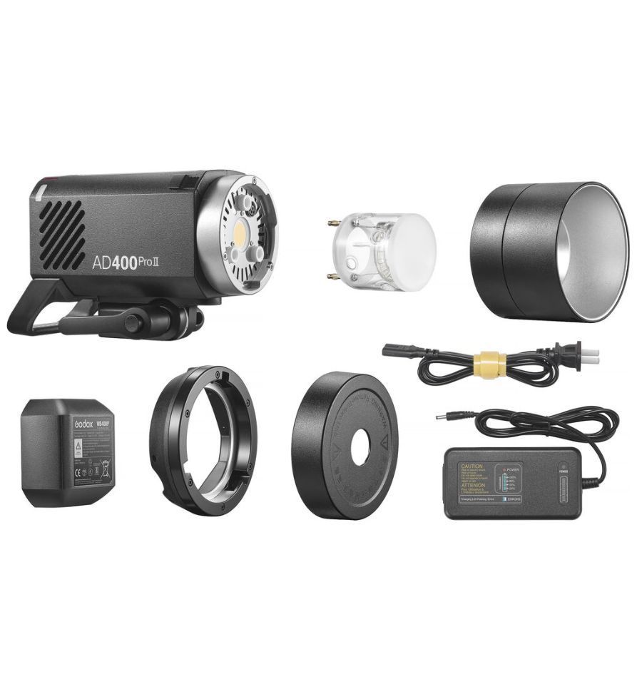 La cabeza del flash tiene un tiempo de reciclado de 0,1 a 1 segundo y un práctico modo Freeze para congelar la acción. El AD400Pro II pesa 2 kg (4,4 lb), similar a su modelo anterior, por lo que sigue siendo lo suficientemente portátil para transportarlo. El tubo de flash desnudo, el reflector y la batería desmontable hacen que el AD400Pro II sea ideal para fotografía en exteriores.