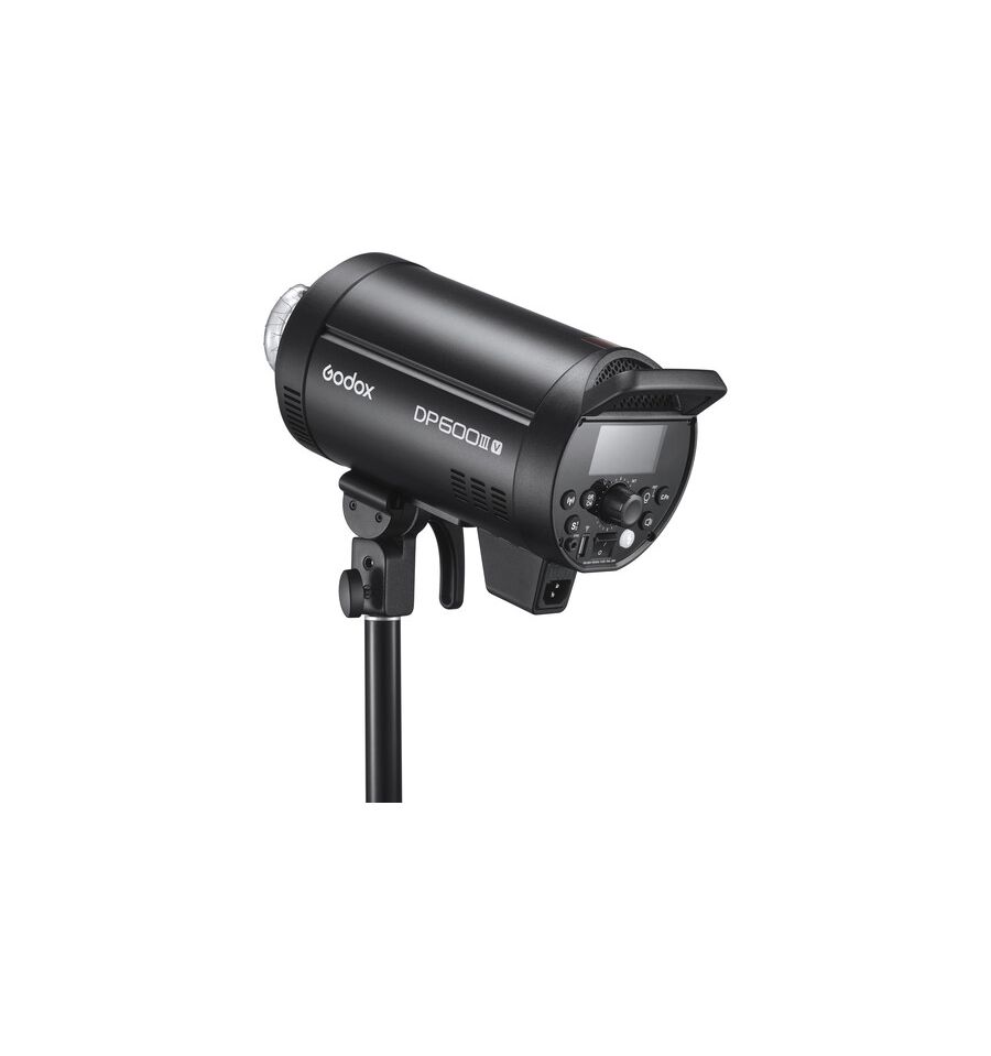 La potencia es variable desde 1/64 hasta la máxima potencia, mientras que la lámpara de modelado LED de 30 W del DP600III-V consume muy poca energía con un gran brillo. Las opciones de disparo incluyen el cable de sincronización, el disparo del receptor, el botón de prueba y el puerto de control inalámbrico. El DP600III-V tiene una pantalla LCD clara para una visualización fácil y conveniente de la configuración y funciona con una alimentación de red de 100 a 240 VCA.