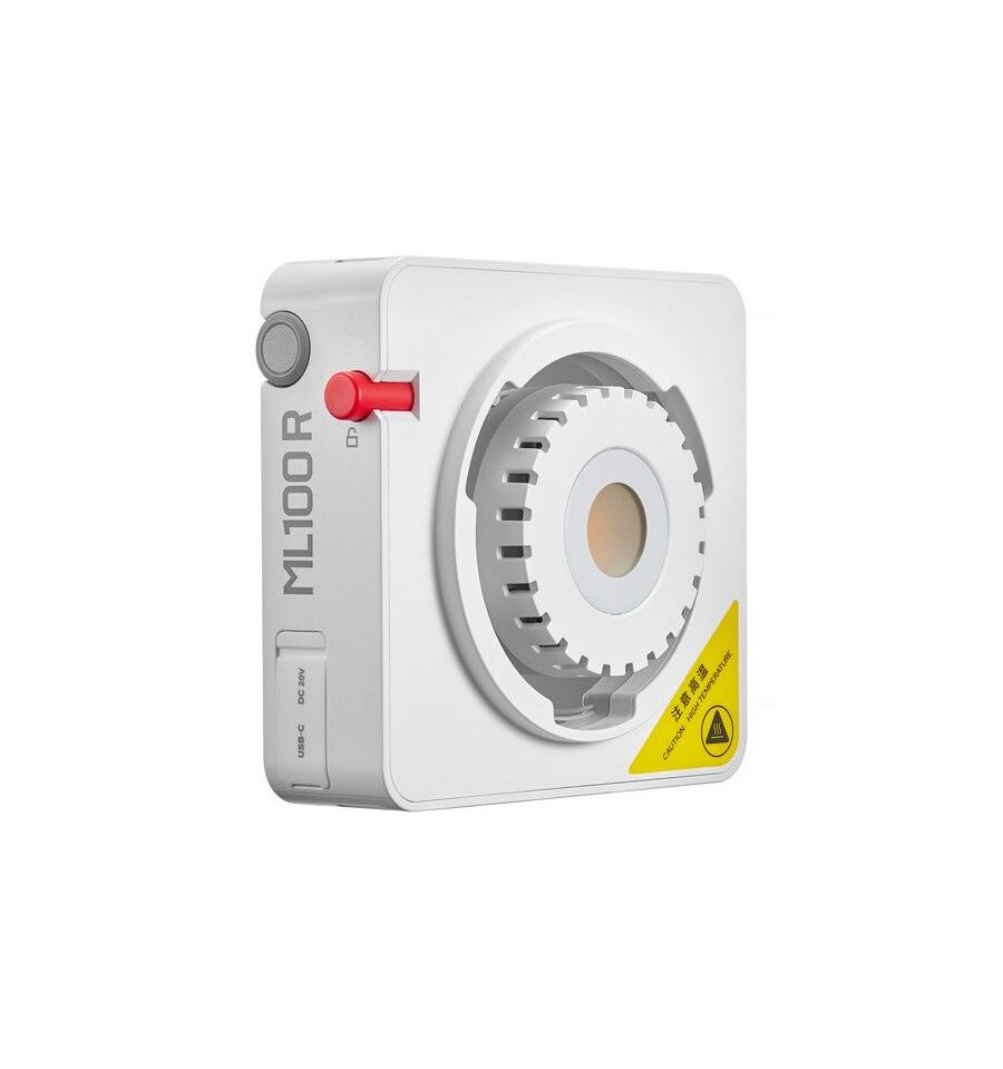 Debido a la popularidad de la versión bicolor ML100, Godox lanza ahora la luz LED portátil ML100R RGB, que ofrece un control completo del color RGB. Lo suficientemente compacta como para sostenerla en la mano o meterla en el bolso, la ML100R, con un elegante cuerpo blanco, es la linterna de bolsillo ideal para llevar a cualquier parte. Con el mismo tamaño de 4,8 x 4,3 x 1,8" que la ML100Bi, la versión RGB mantiene posibilidades de alimentación flexibles para su uso en una amplia gama de lugares, desde configuraciones interiores hasta exteriores, lo que funciona muy bien para tomas sobre la marcha. La luminaria viene con un innovador reflector de lente de 15° que aumenta su salida y es intercambiable con uno opcional de 36°. Además de la perforación bicolor y la salida RGB completa, la ML100R también ofrece 14 efectos de iluminación seleccionables para crear el ambiente exacto que necesita. Su capacidad RGB te ayuda a añadir más creatividad a tus escenas.