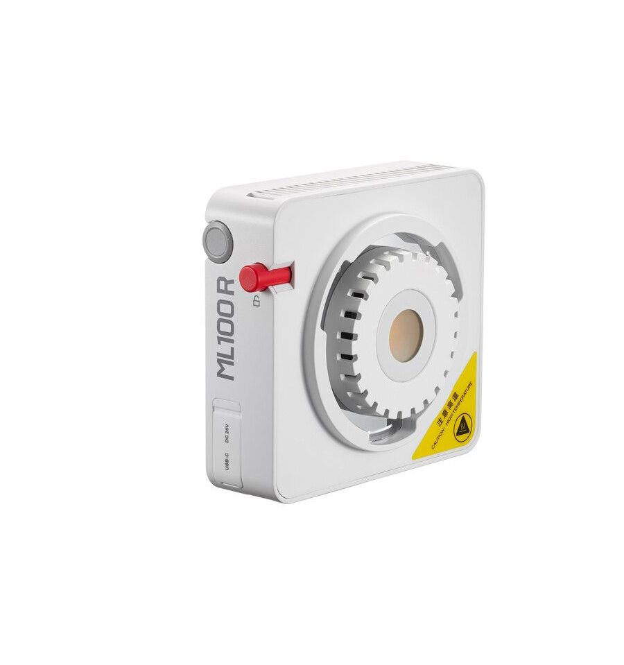 El ML100R tiene un CCT ajustable más amplio con salida RGB completa de 1800 a 10,000K, y cuenta con atenuación de 0 a 100%. Con una alta calificación de 95 para los estándares CRI y TLCI, el dispositivo ofrece una precisión de color excepcional. Incluso en su factor de forma compacto y portátil, la luz desnuda tiene una iluminancia de 2360 lux a 3.3 '(5600K), que se expande a unos impresionantes 12,900 lux usando el reflector de lente de 15 ° incluido.